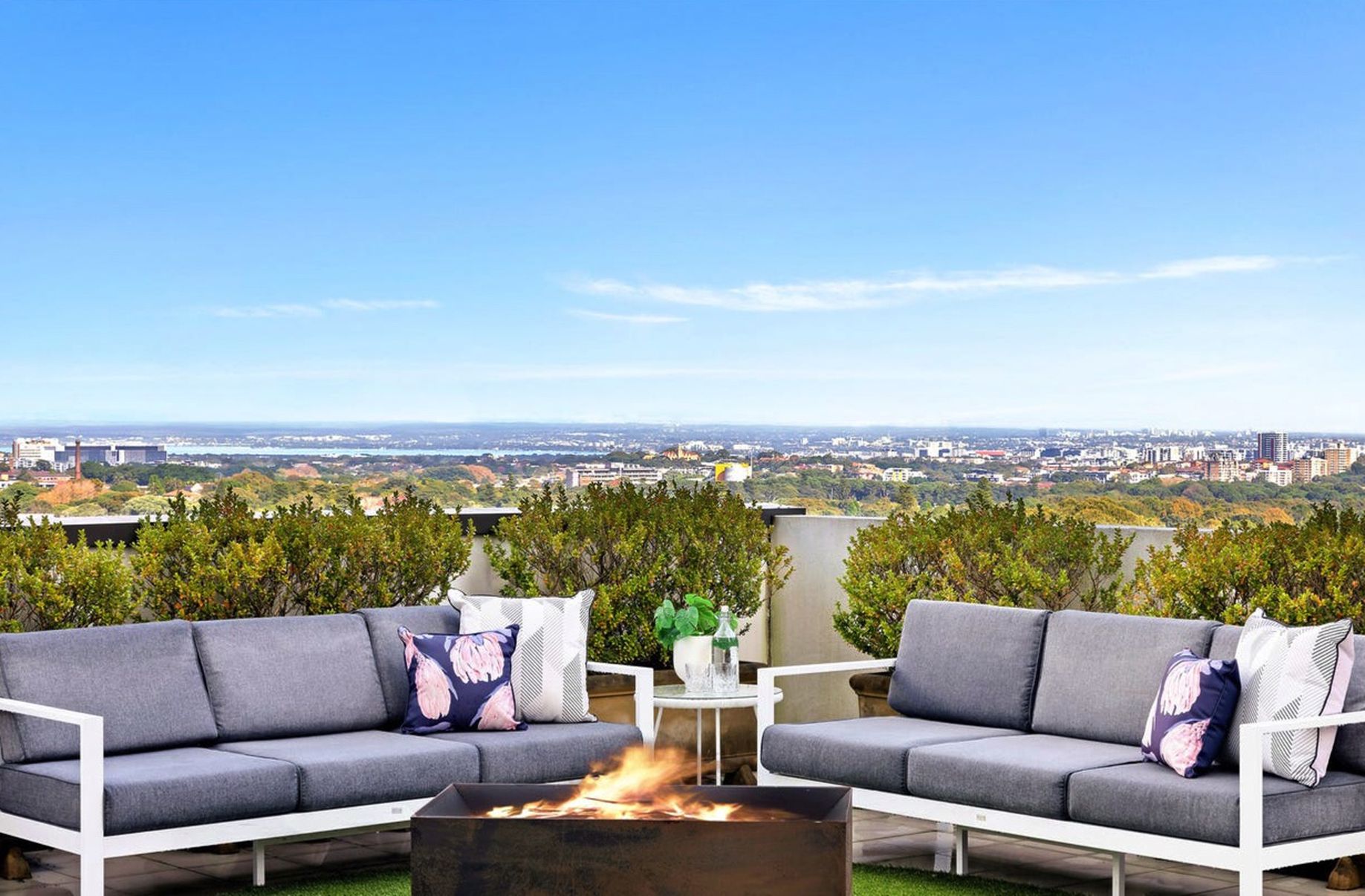 Panoramic views stretching over Centennial Park to Botany Bay create a dramatic ever-changing backdrop to the stylish interiors of this executive apartment.