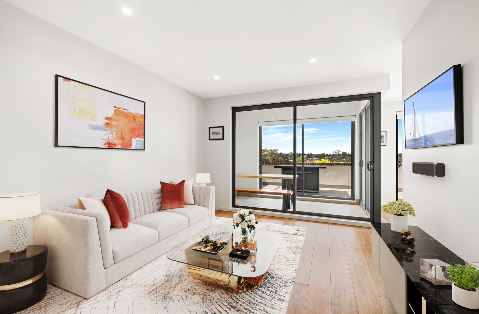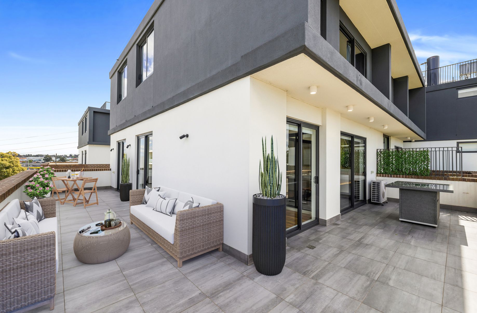 Perfect for entertaining, this property features a modern open plan layout with stylish interiors, a generous living area that leads onto a separate loggia dining area, and opens onto a large, bright, and spacious terrace with district views.