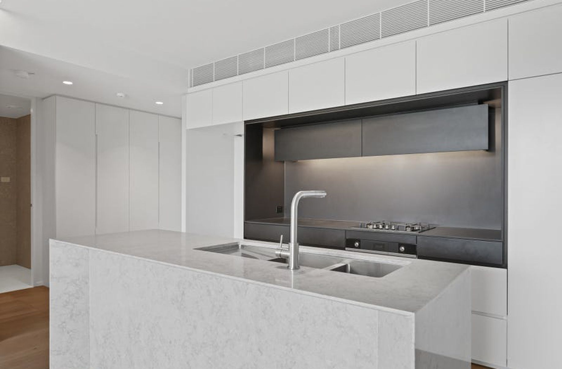 - Gourmet kitchen with Caesarstone island bench