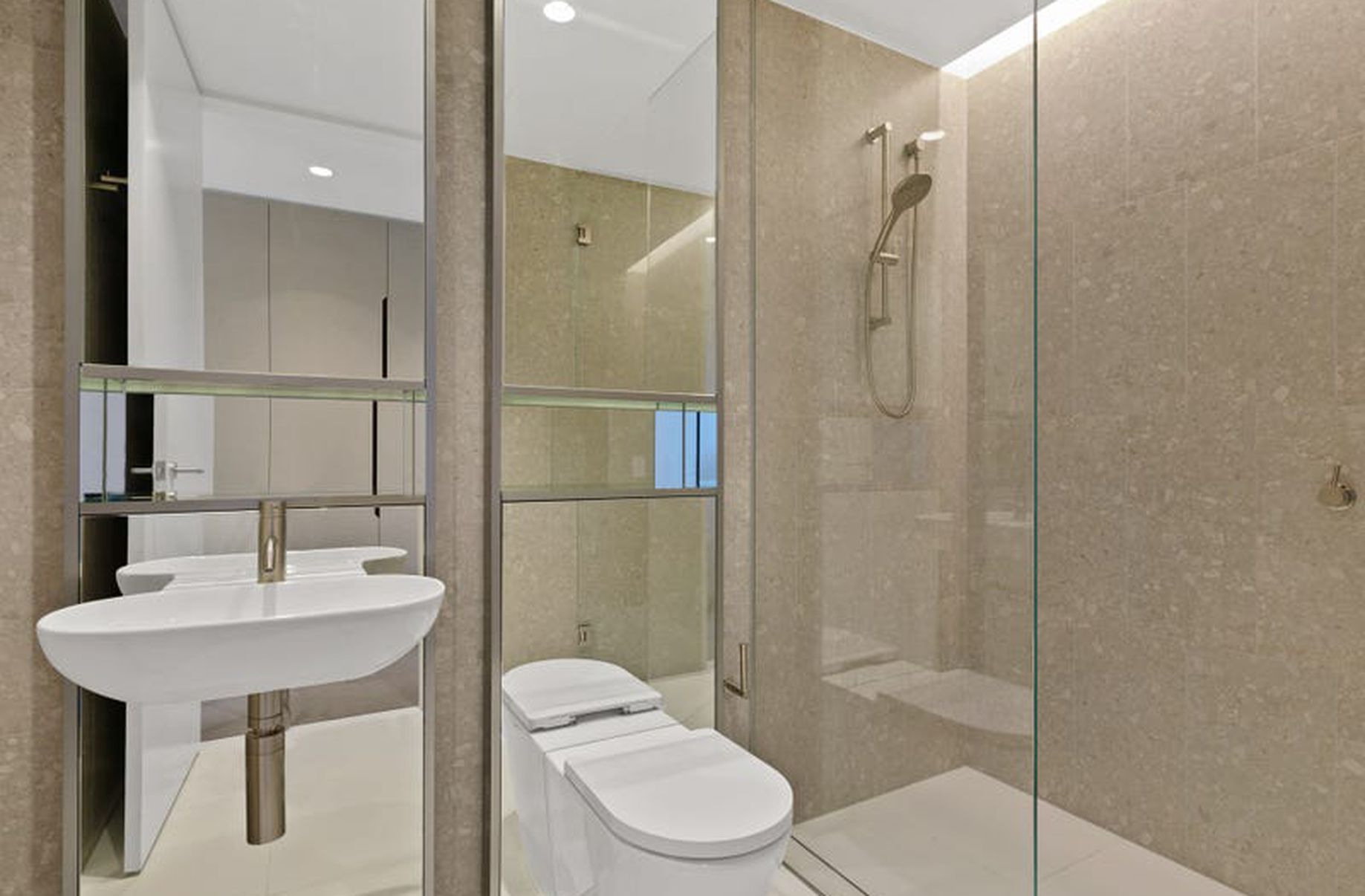 - Main bathroom & ensuite both with large glass-framed showers