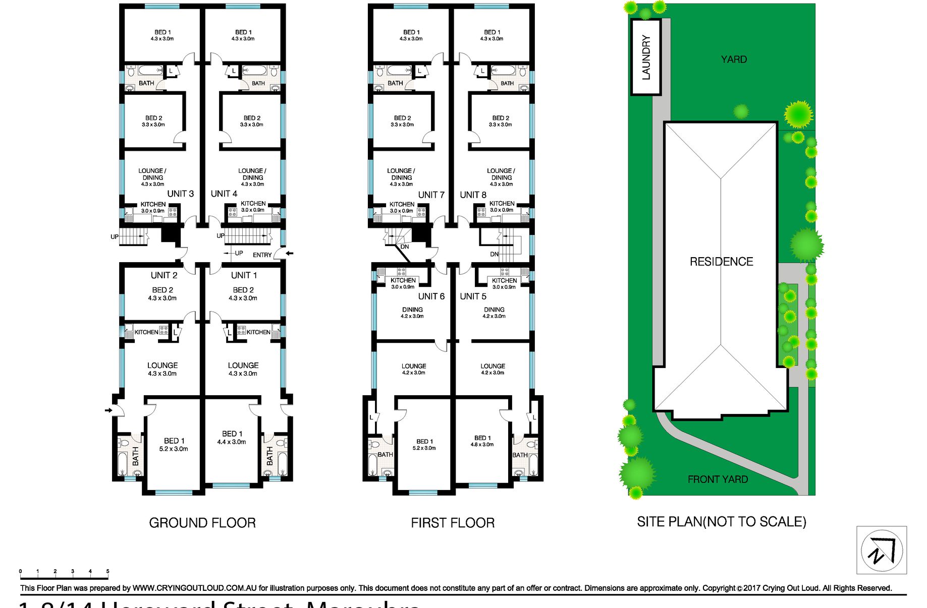 - Rear laundry and garden shared by all apartments