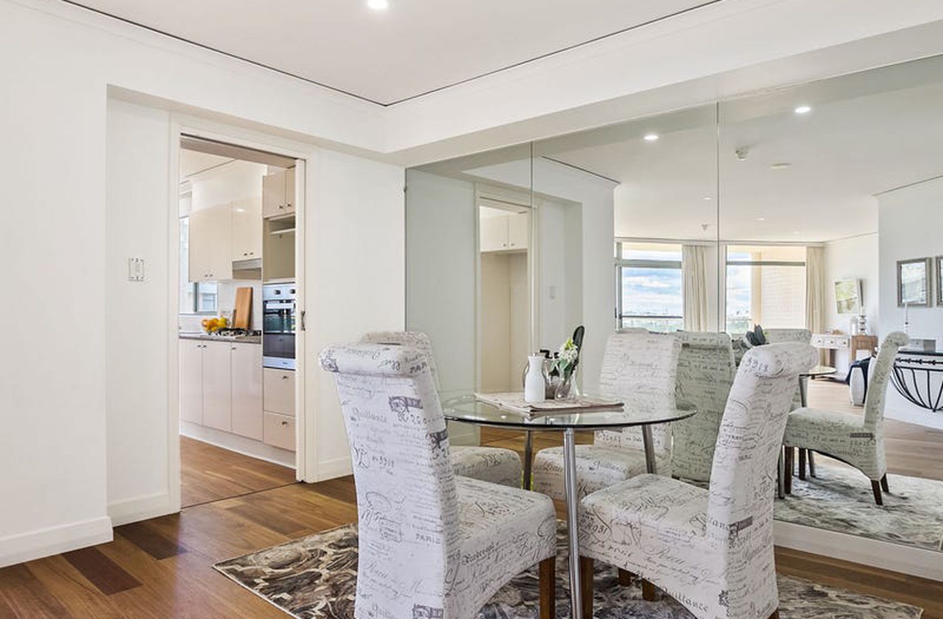 - Designated dining area with stylish mirror feature wall
