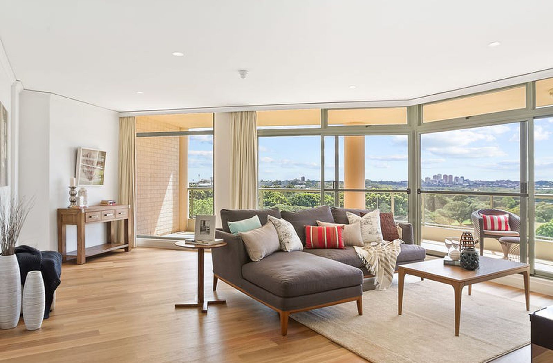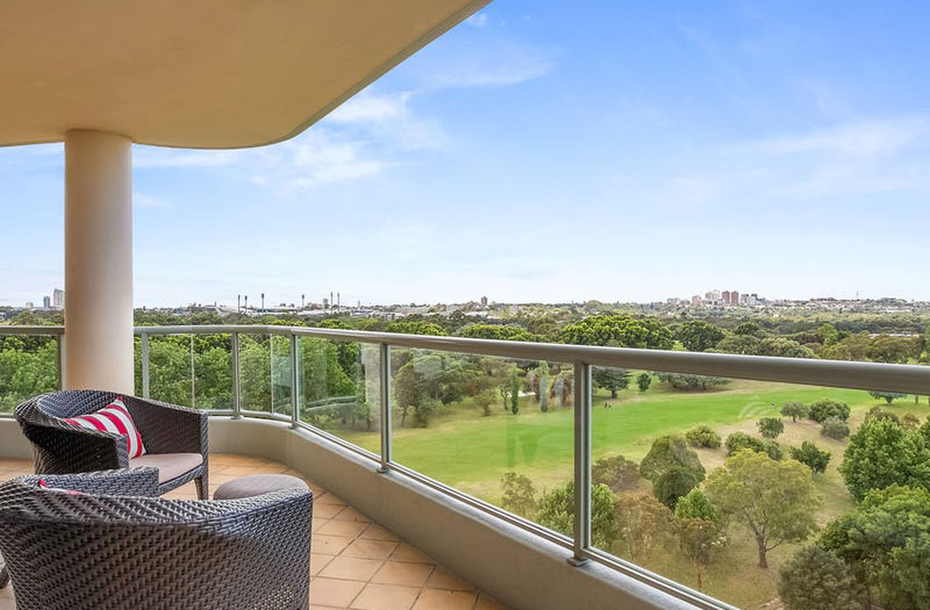 - Large north-east balcony with city & golf course views