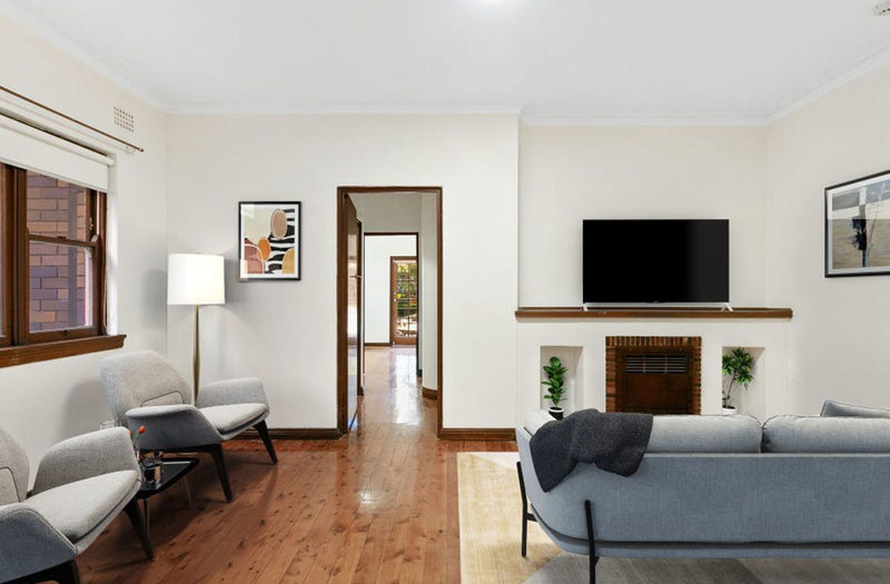 - Led light fittings installed, polished wooden floorboards throughout