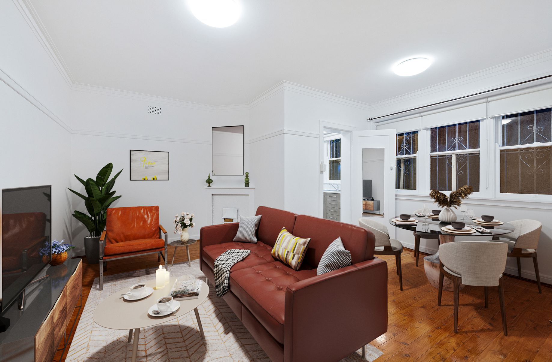 - Combined lounge and dining area