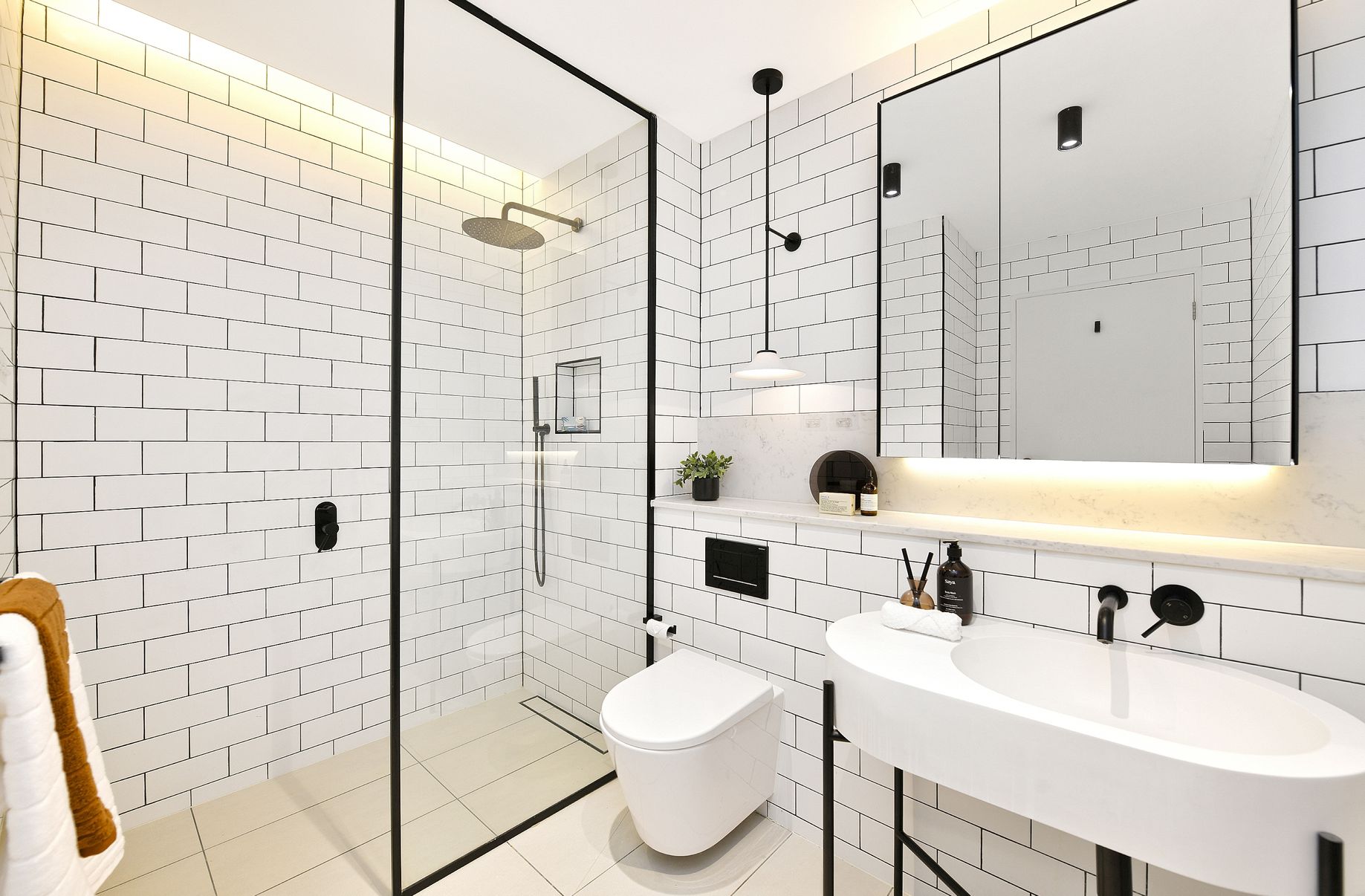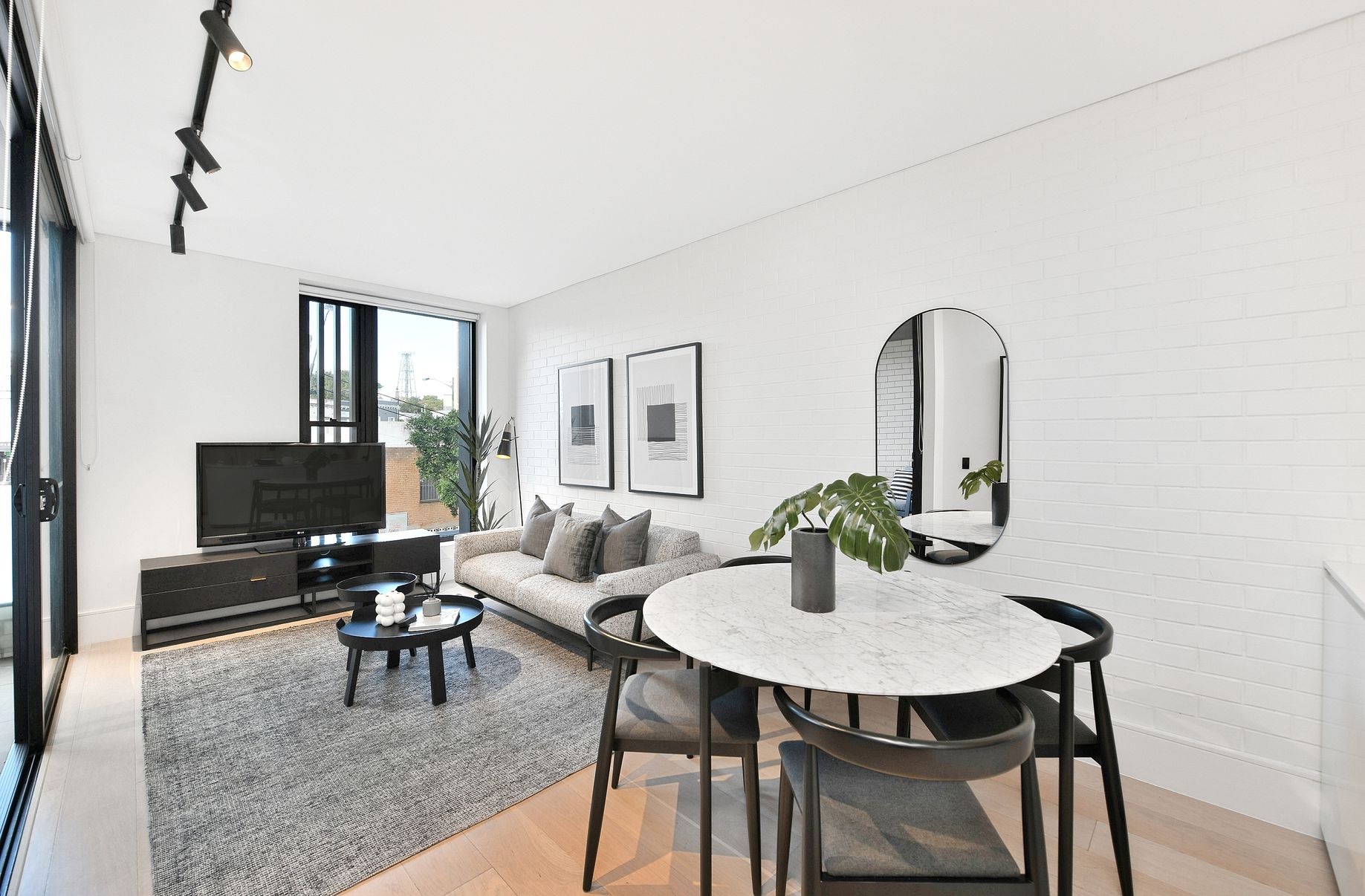 - Floor-to-ceiling windows and LED downlights