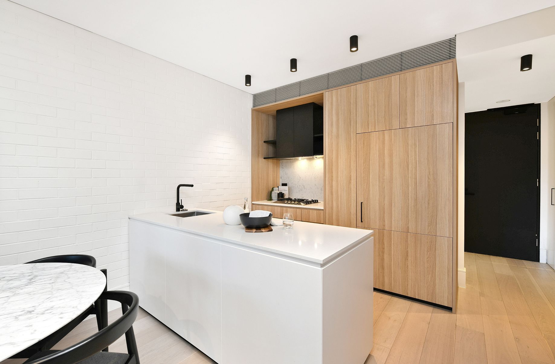- Modern kitchen equipped with Miele appliances, stone benchtops, high-quality finishes and an integrated fridge