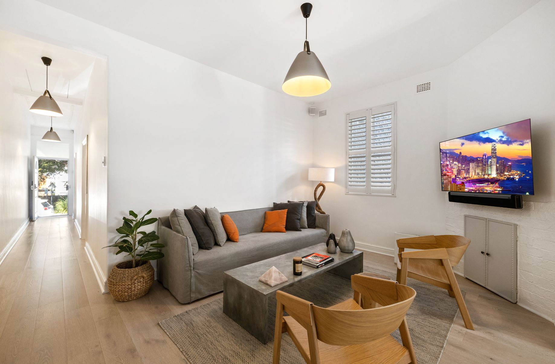 - Plantation shutters for added privacy and style