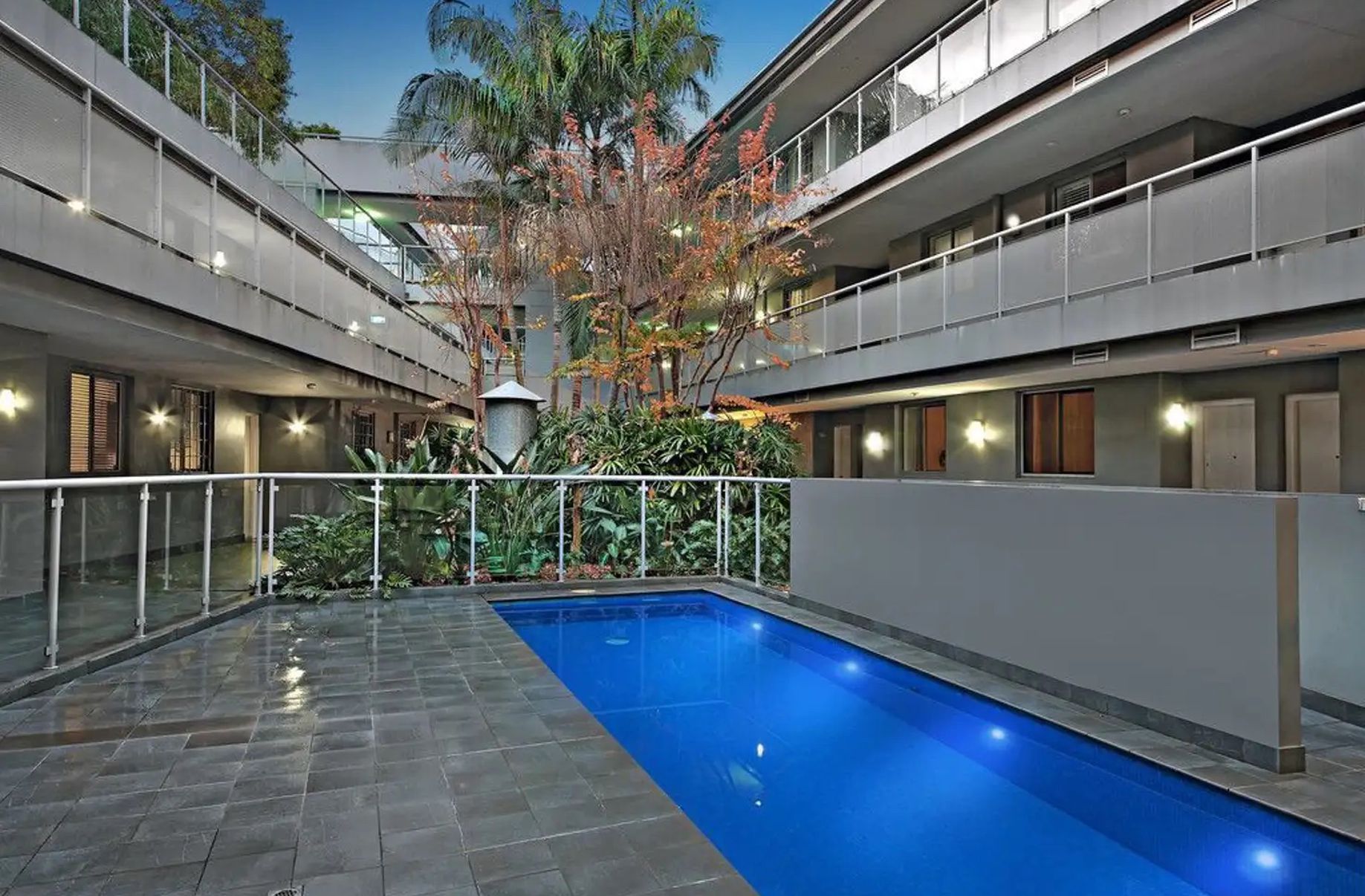 Secluded from the road on the quiet eastern side of the block, this complex has it all with access to superb facilities including an outdoor pool, gym, and rooftop gardens with sweeping city views.
