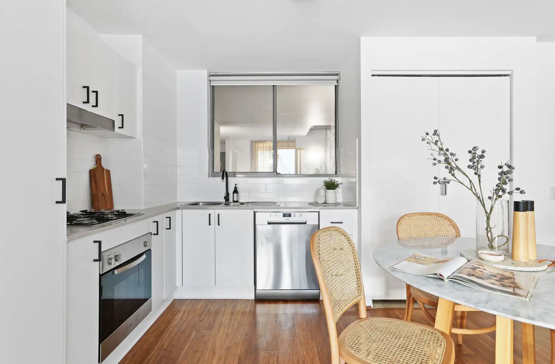 - Streamlined Caesarstone gas kitchen with a new dishwasher