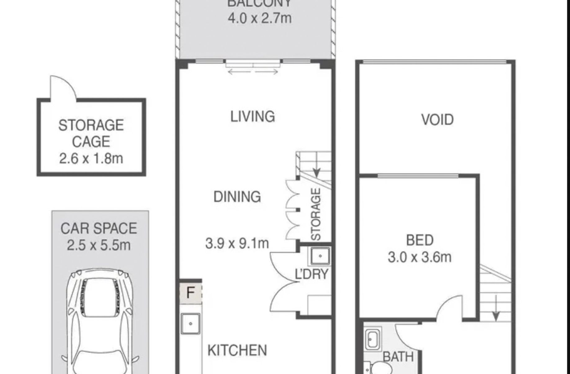 - Single car space in basement garage with a lock-up storage cage