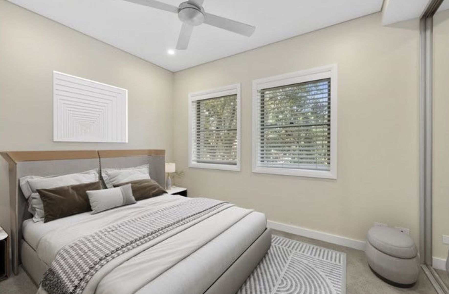 - Two generously sized bedrooms, both with ceiling fans