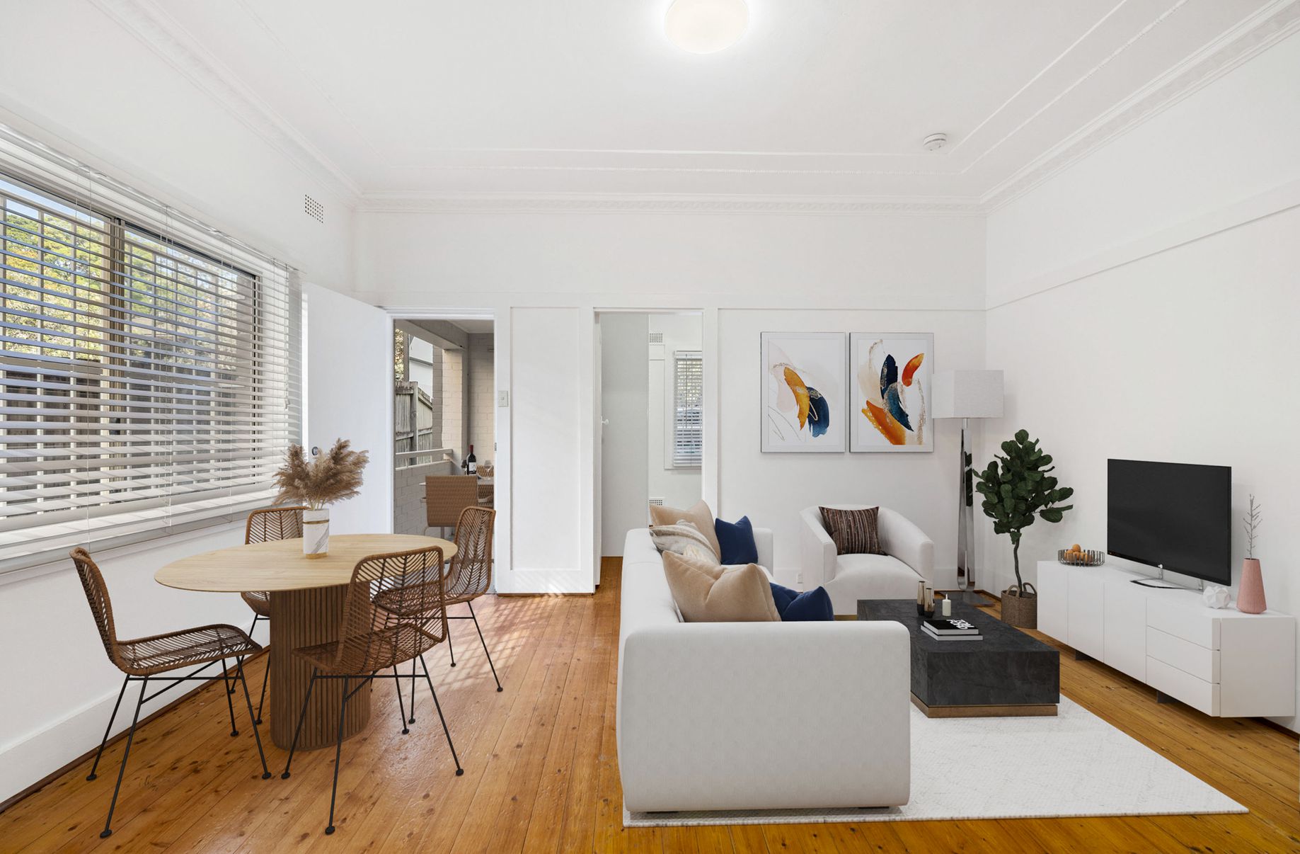 - Open plain living/dining space