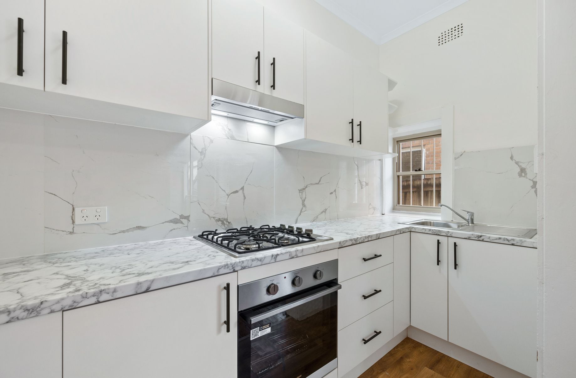 - Modern kitchen with gas cooktop and electric oven
