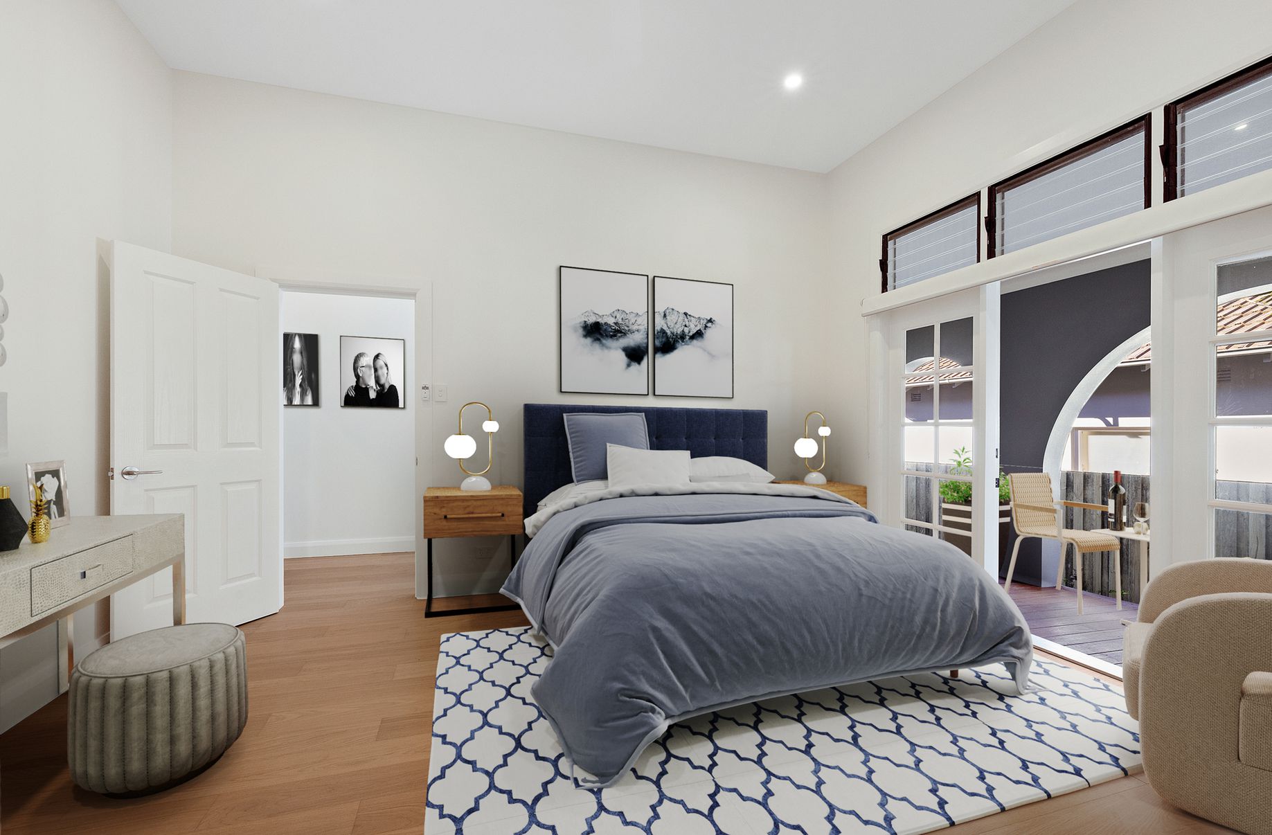 - Spacious main bedroom with balcony access