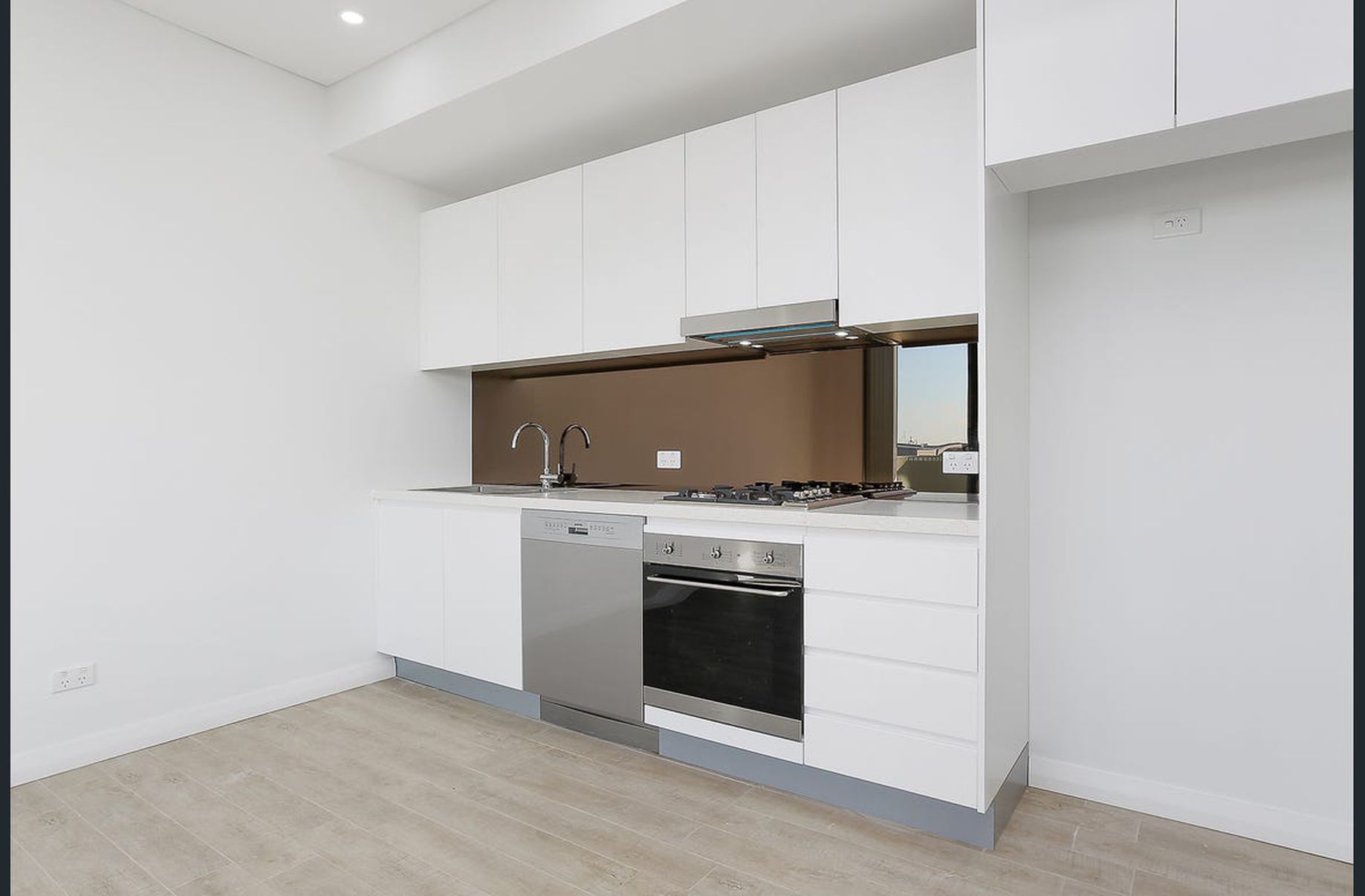 - Designer Gas Kitchen, with dishwasher, glass splash back and stone benches