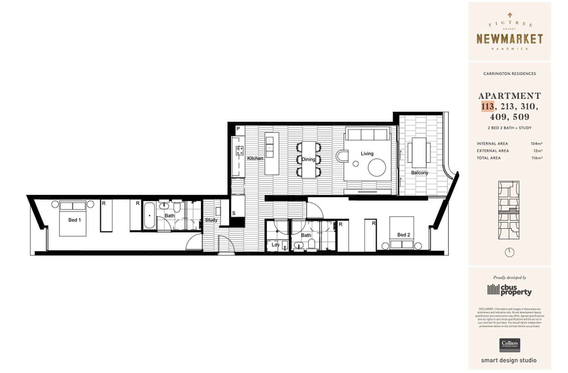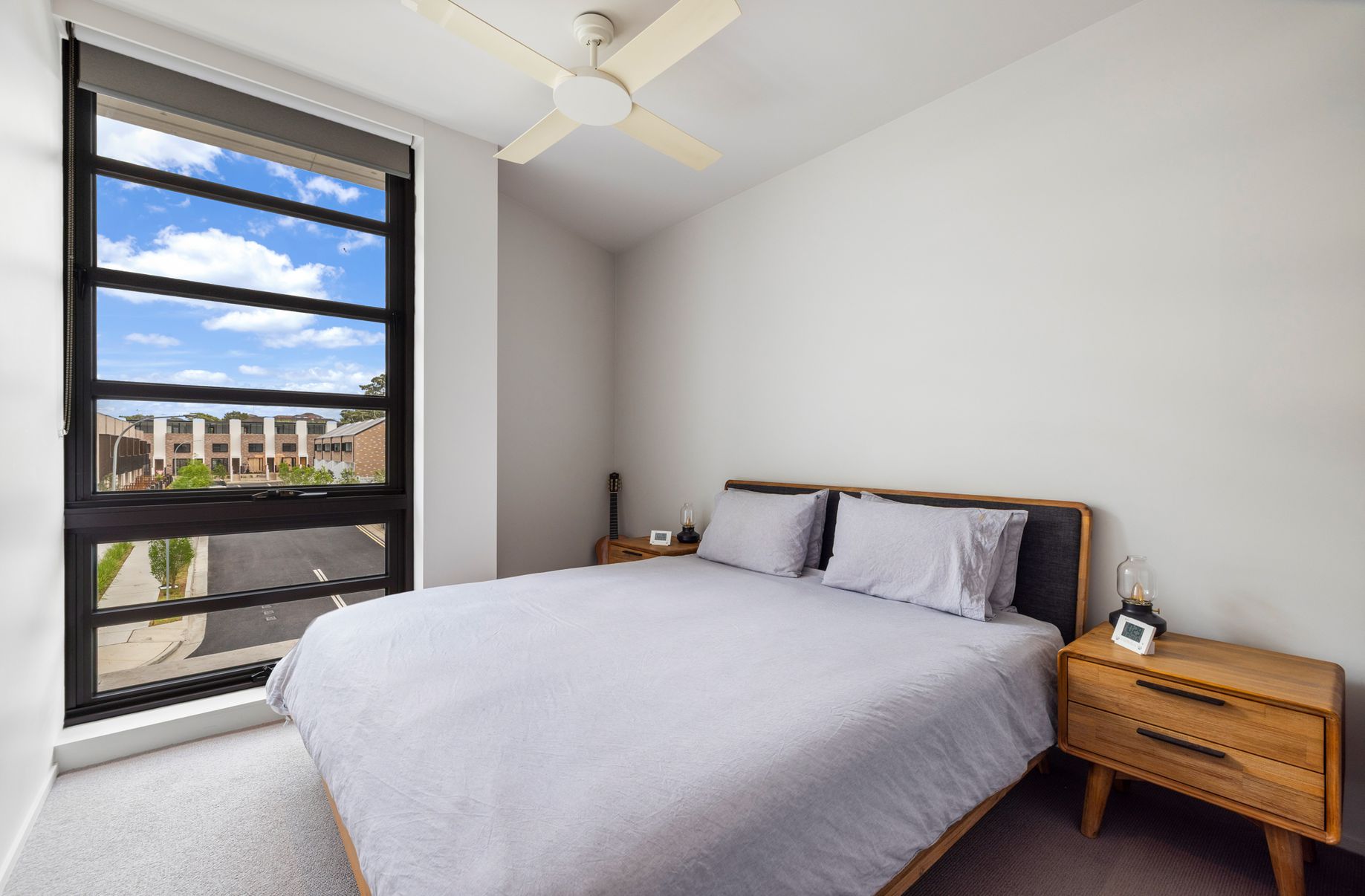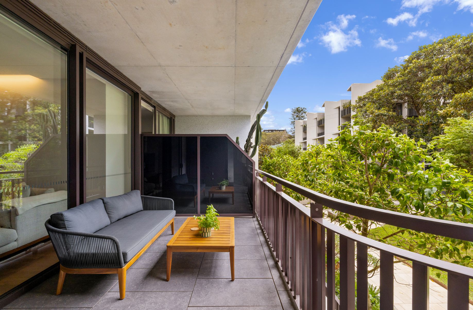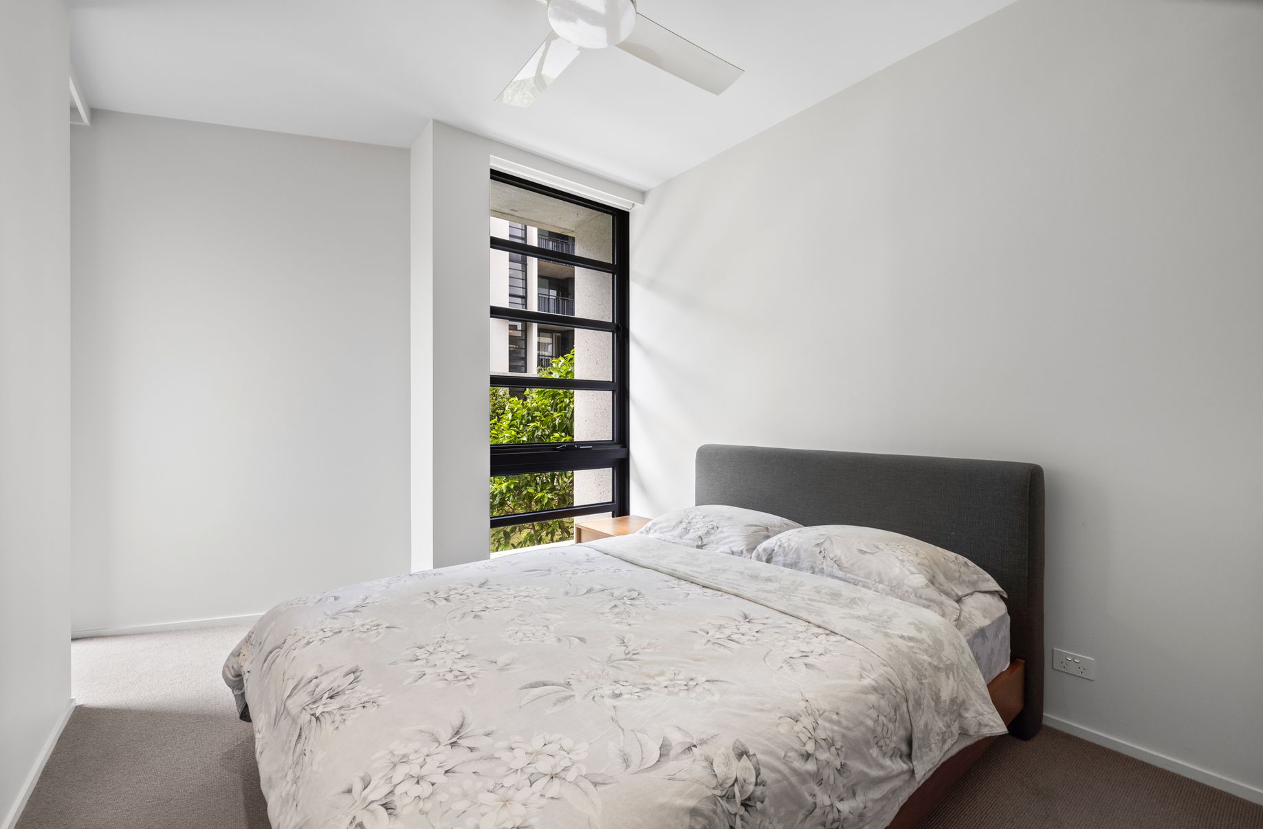 Situated in Carrington Residences, the apartment offers a private outlook over lush landscaped common areas.