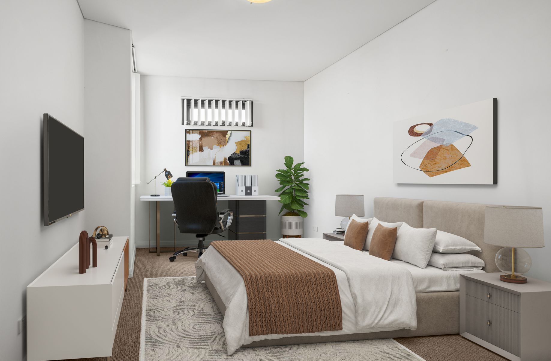 - Generous bedroom with large built-in wardrobes and plush carpet