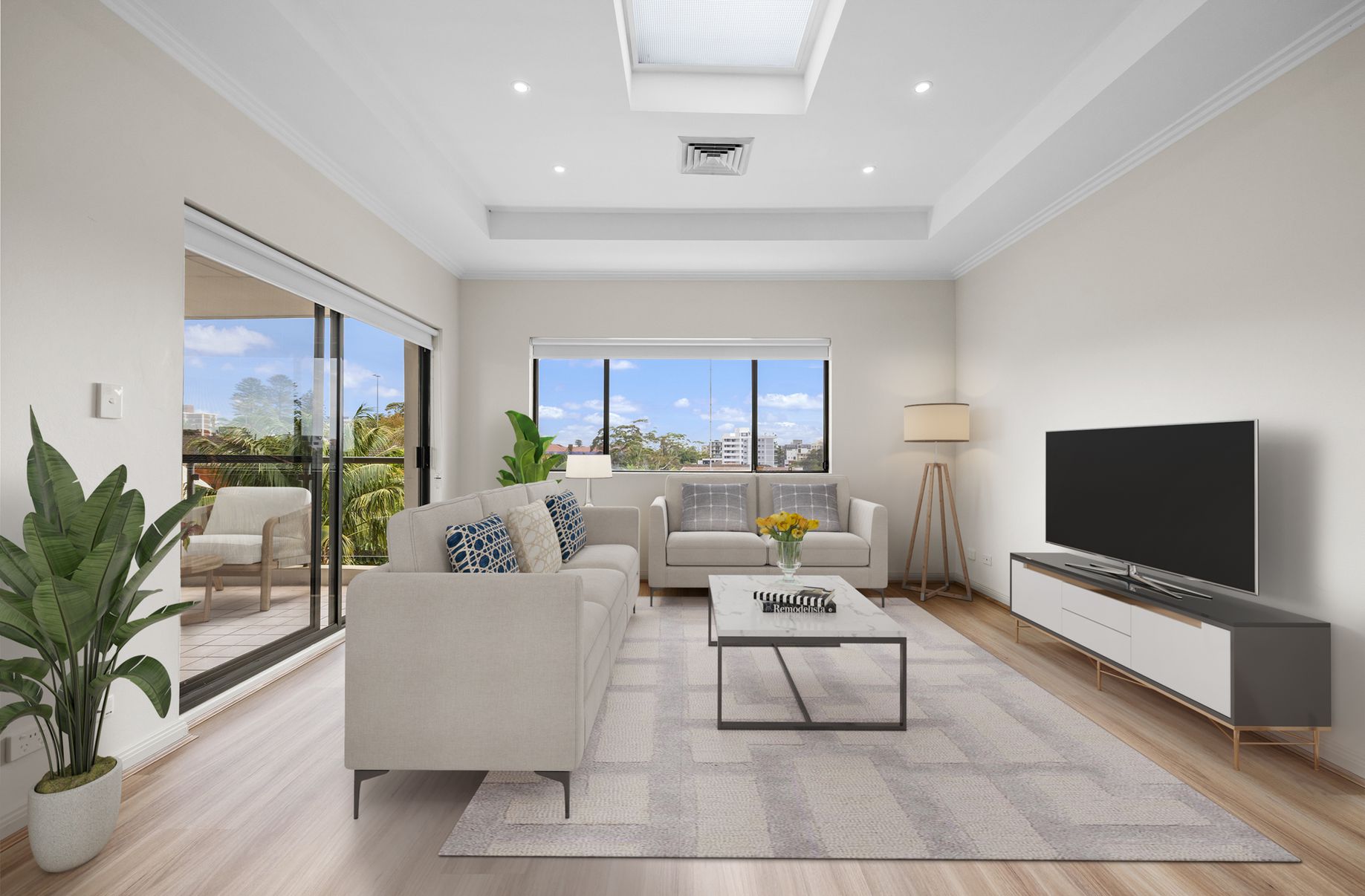 Designed for relaxed coastal living, the expansive living and dining areas are flooded with northerly sunshine and flow seamlessly onto a full-length entertainer’s terrace perfect for year-round entertaining. Impeccably appointed throughout, the apartment showcases quality fixtures and finishes, delivering comfort and understated luxury.