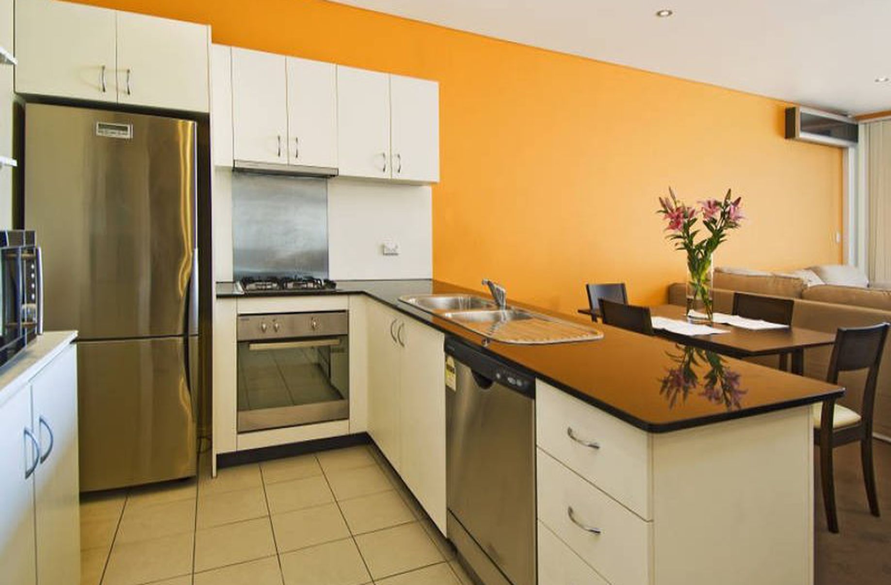 •Gas kitchen with stainless steel appliances and dishwasher with plenty of cupboard space