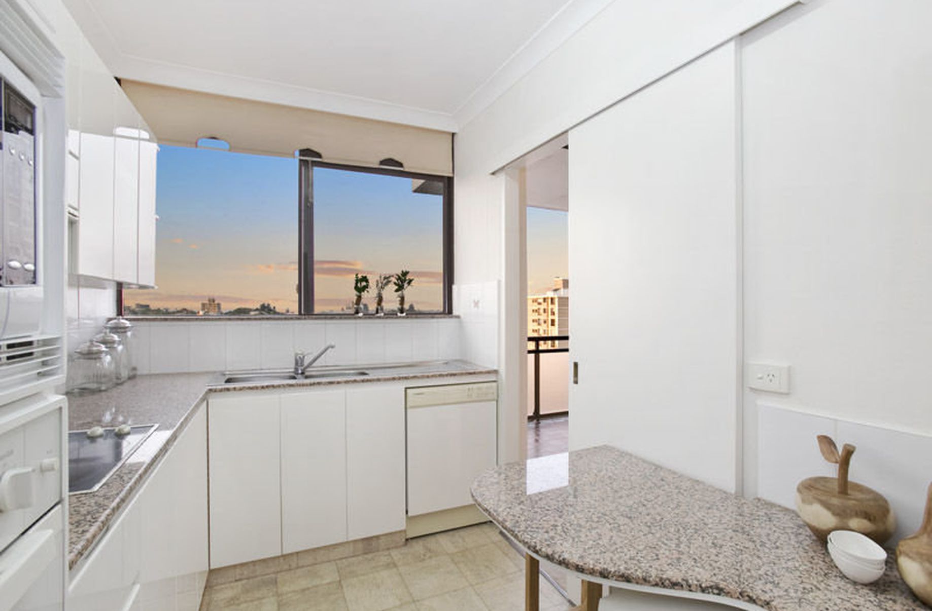 The neat kitchen is appointed with a granite bench, polyurethane cupboards and electric stove, and leads to the separate laundry with dryer. A highly secure block of just 24 apartments, this property has virtually no common walls, and comes with a double lock-up garage with plenty of extra storage space and lift access.