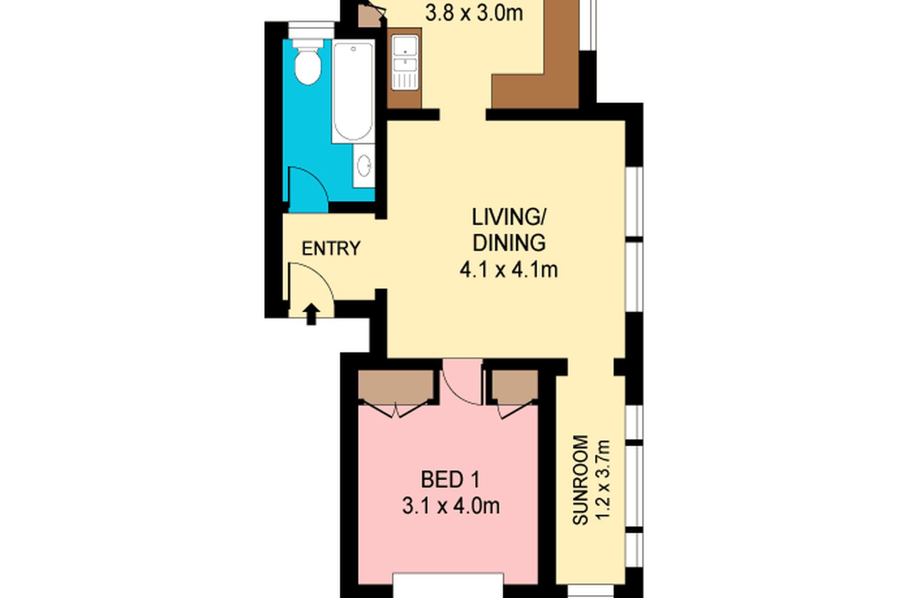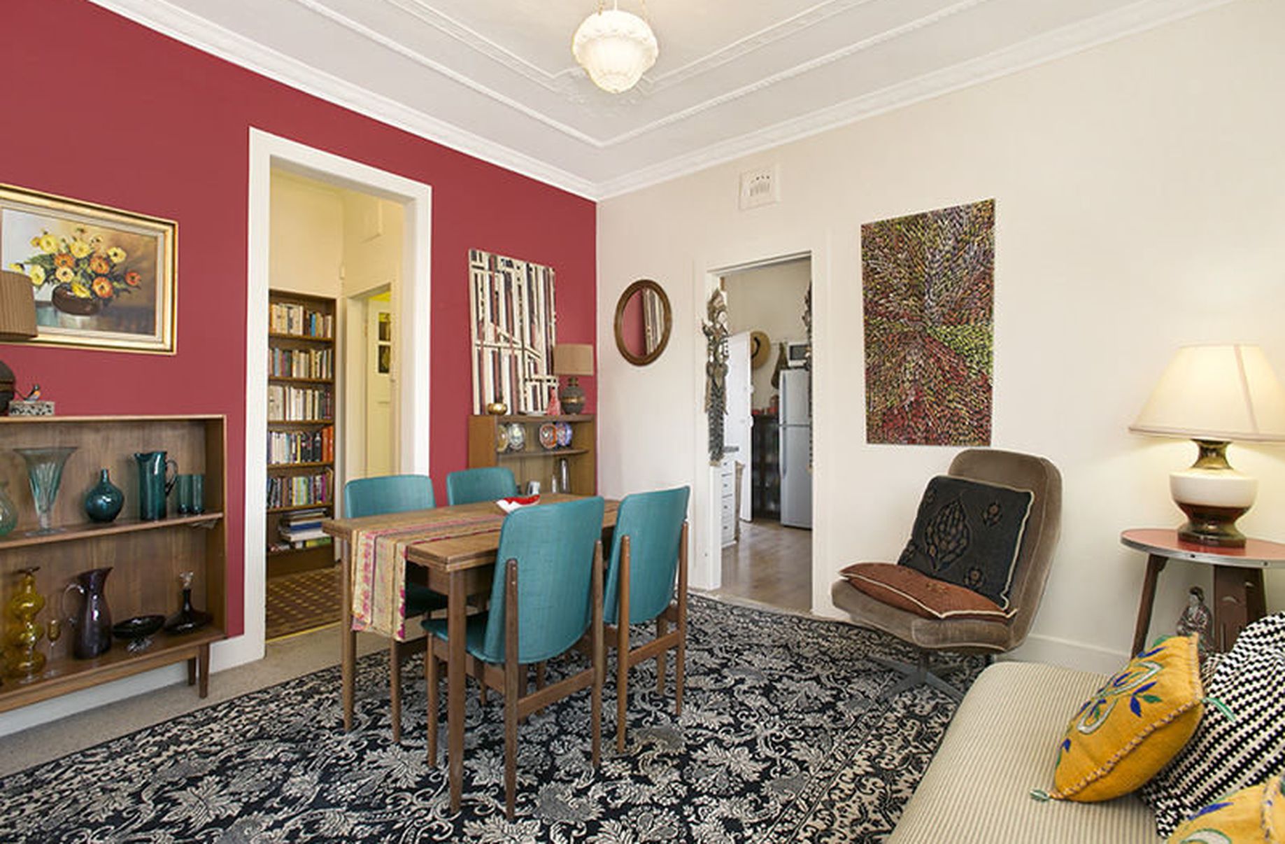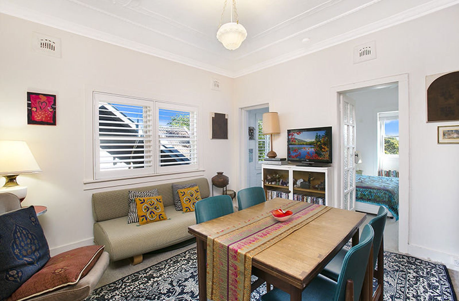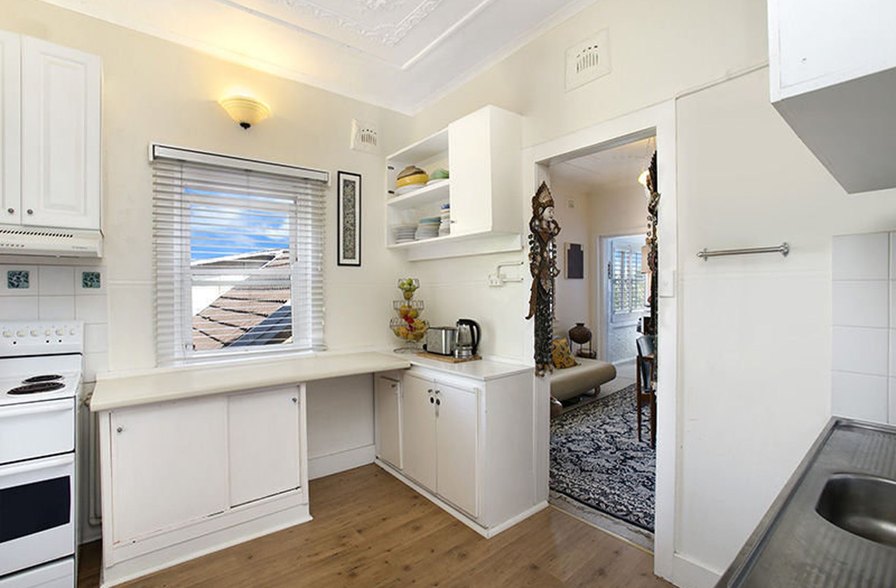 A formal floor plan featuring elegant period features comprises of two bedrooms with built-in robes and ceiling fans, a combined lounge and dining room with carpet throughout, an eat-in kitchen with great storage and a full bathroom with tessellated tiling. An additional sunroom with built-in storage provides additional space for a home office or nursery.