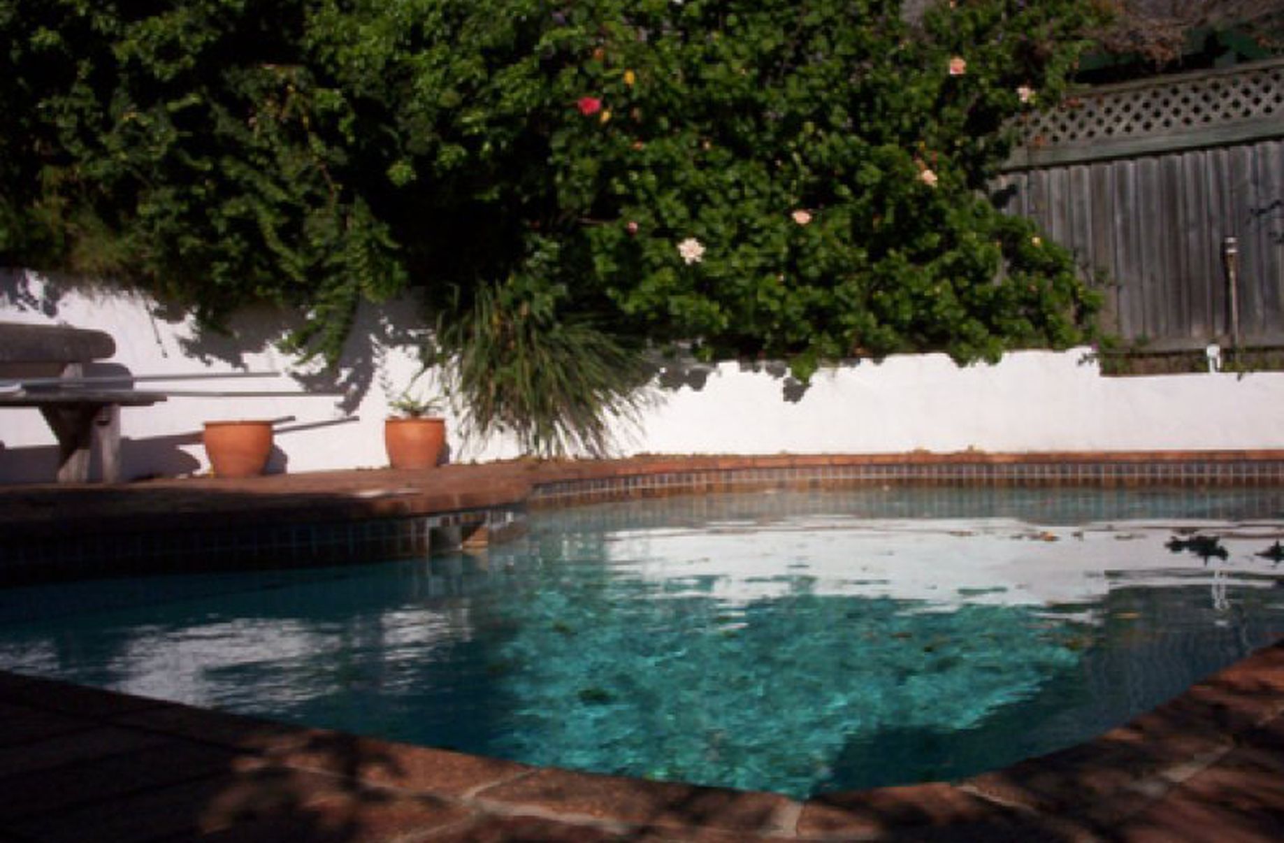 Freestanding three bedroom House, large modern eat-in kitchen with slate floor, polished floors, lock up garage, in-ground pool, city views, dishwasher, rear patio and shed, foxtel.