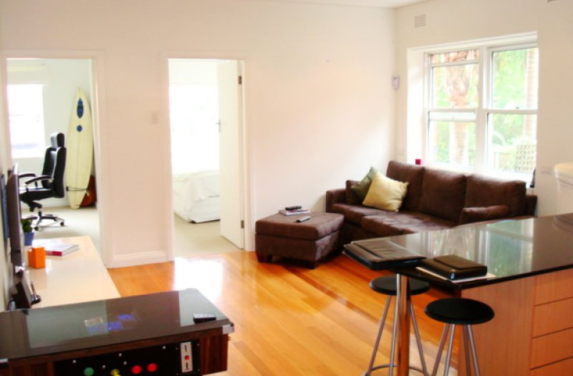 Unfurnished 2 bedroom unit, elevated ground floor at the back of the building. Built-in wardrobe in main bedroom. Renovated, polished floors, dishwasher, open plan. Street parking