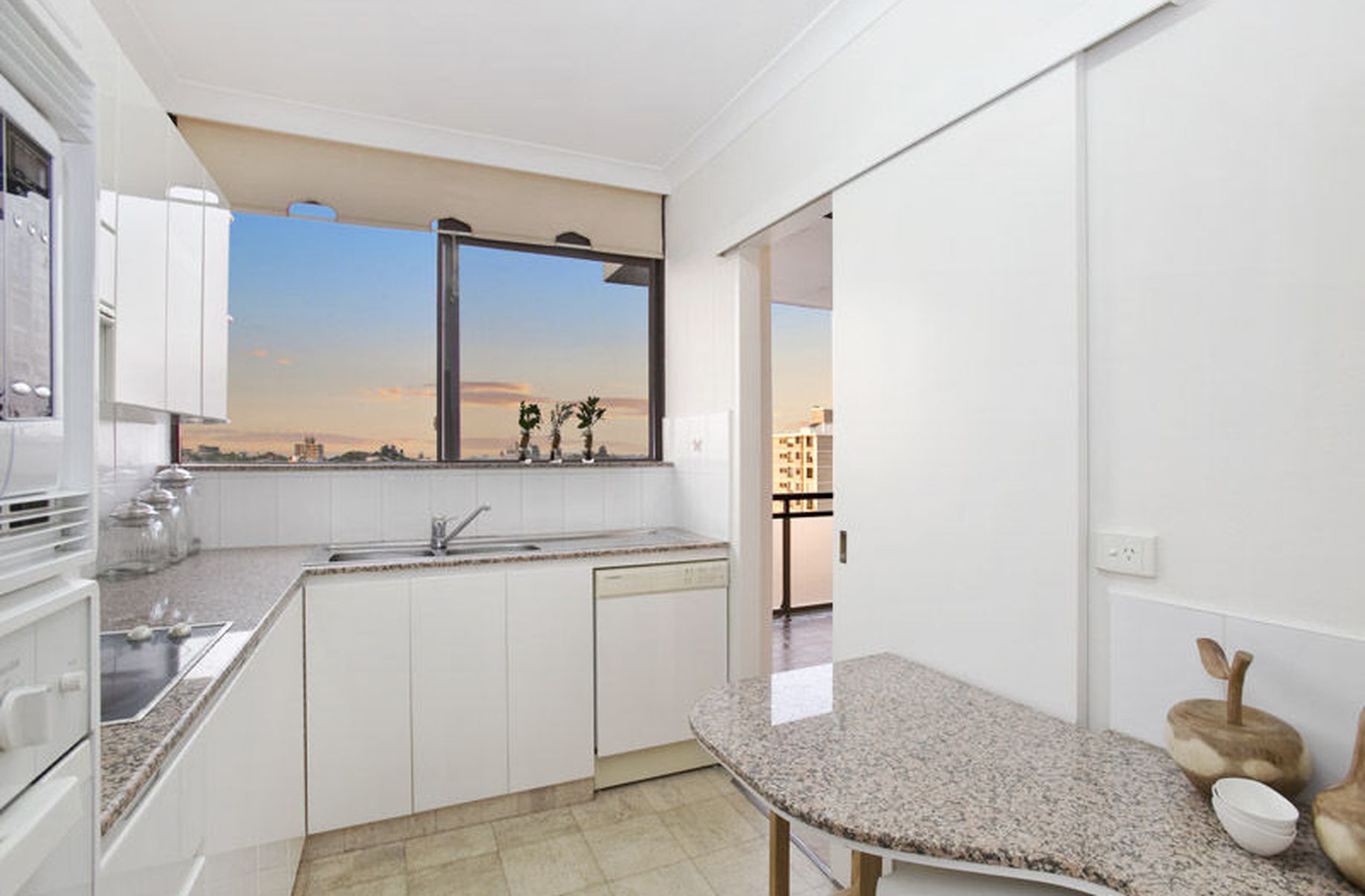 The neat kitchen is appointed with a granite bench, and electric cooking, and leads to the separate laundry with dryer. A highly secure block of just 24 apartments, this property has virtually no common walls, and comes with a double lock-up garage with plenty of extra storage space and lift access.