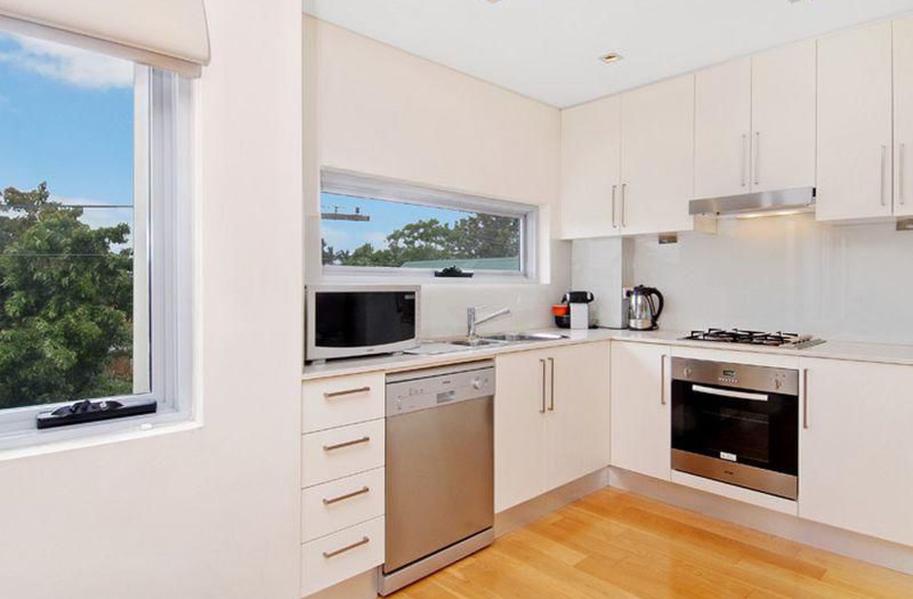Isis Court. Split level 2 bedroom security apartment, living and dining with polished timber floors, opening via bi-fold doors to a deep entertainers terrace. Caesar Stone kitchen with stainless steel European appliances, spacious bedrooms with built-in robes, the main with an ensuite, main bathroom with a bath and stone topped vanity. Additional features include a lower level powder room, skylit internal laundry, reverse cycle air conditioning and secure undercover parking. A brief stroll to Kingsford Village cafes, UNSW, with city transport footsteps from the door. NO PETS.