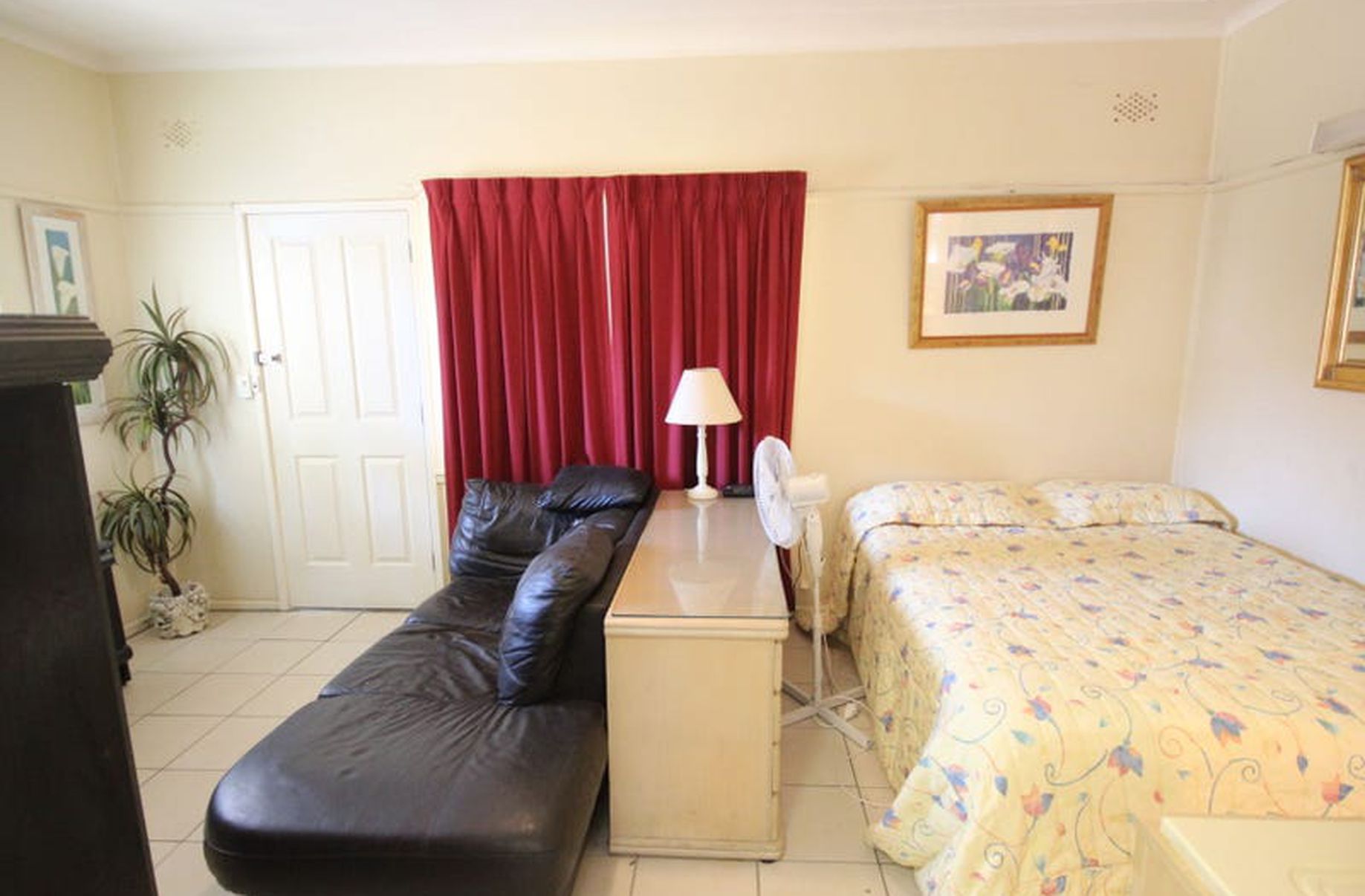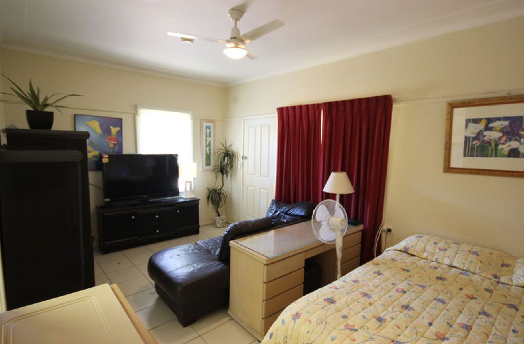 - Furniture includes Queen bed, wardrobe, leather lounge, fridge 50 inch TV.