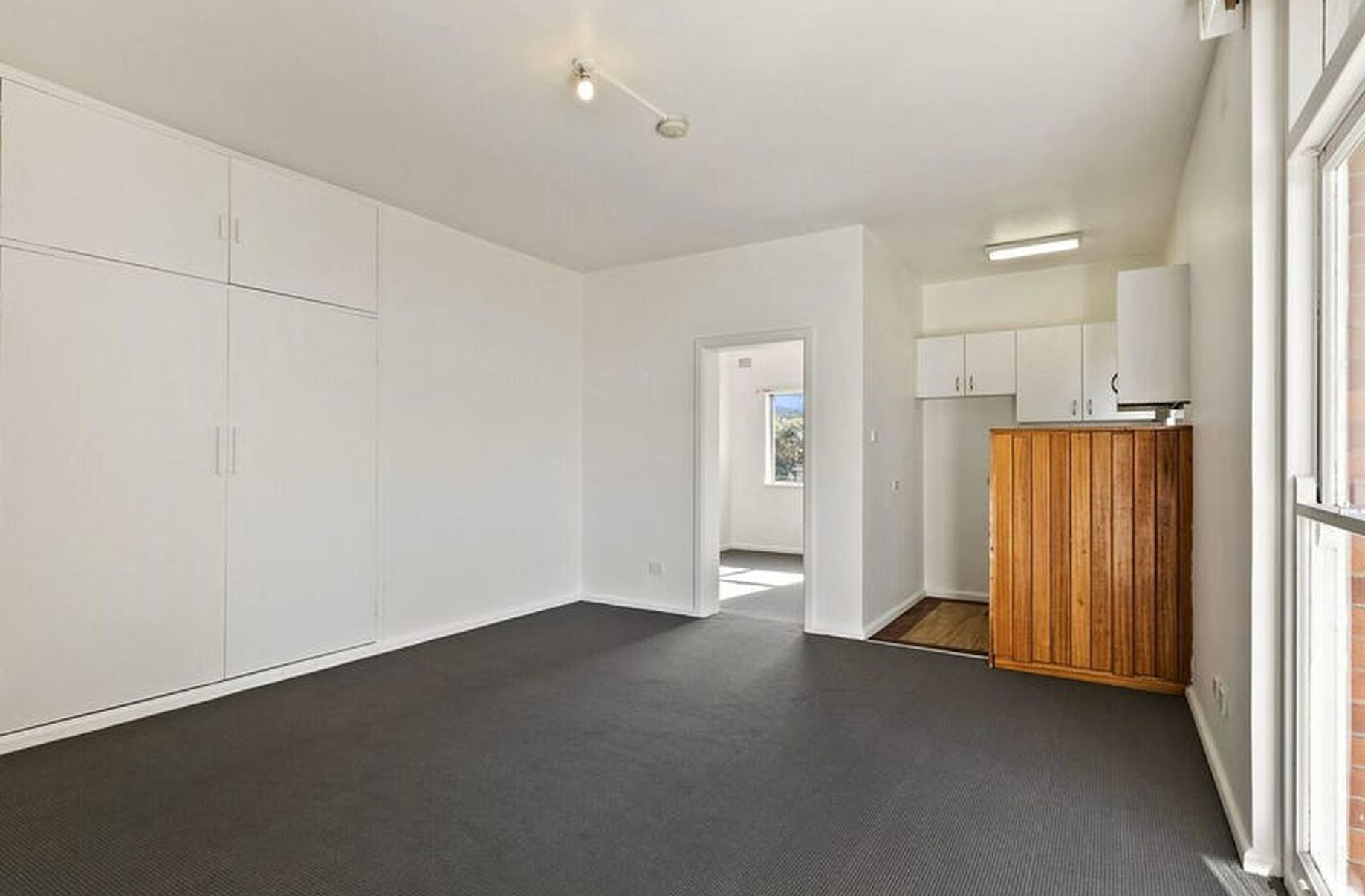 Bright & sunny one bedroom unit located on middle floor in small block of 12. Features open plan living area with balcony, views from bedroom, recently installed carpet throughout and recently installed kitchen flooring, recently painted throughout, modern kitchen, neat and tidy bathroom with bath, built-in wardrobe, street parking and communal laundry. Located only minutes walk to Westfield shopping centre and train/bus interchange. NO PETS.