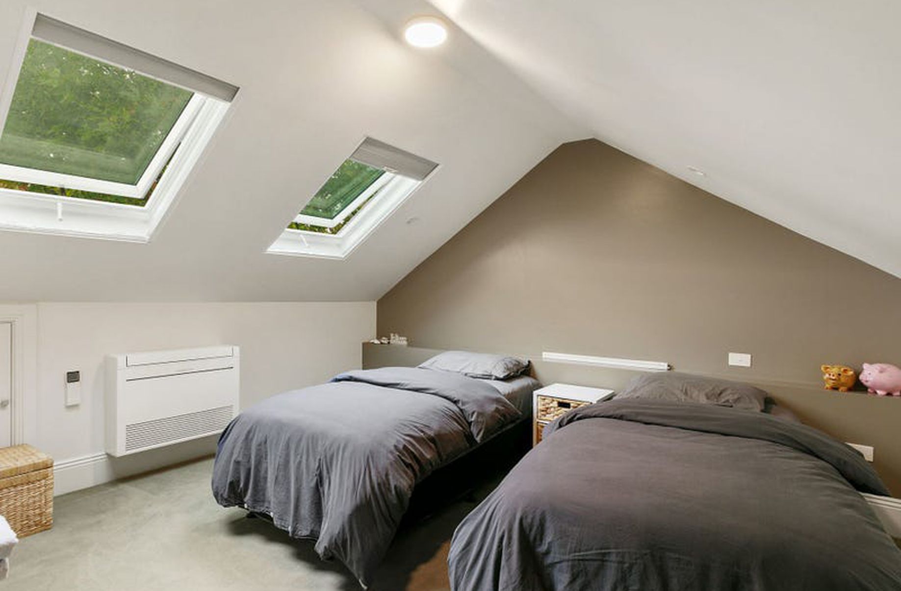 - This room is a charming loft-style space.