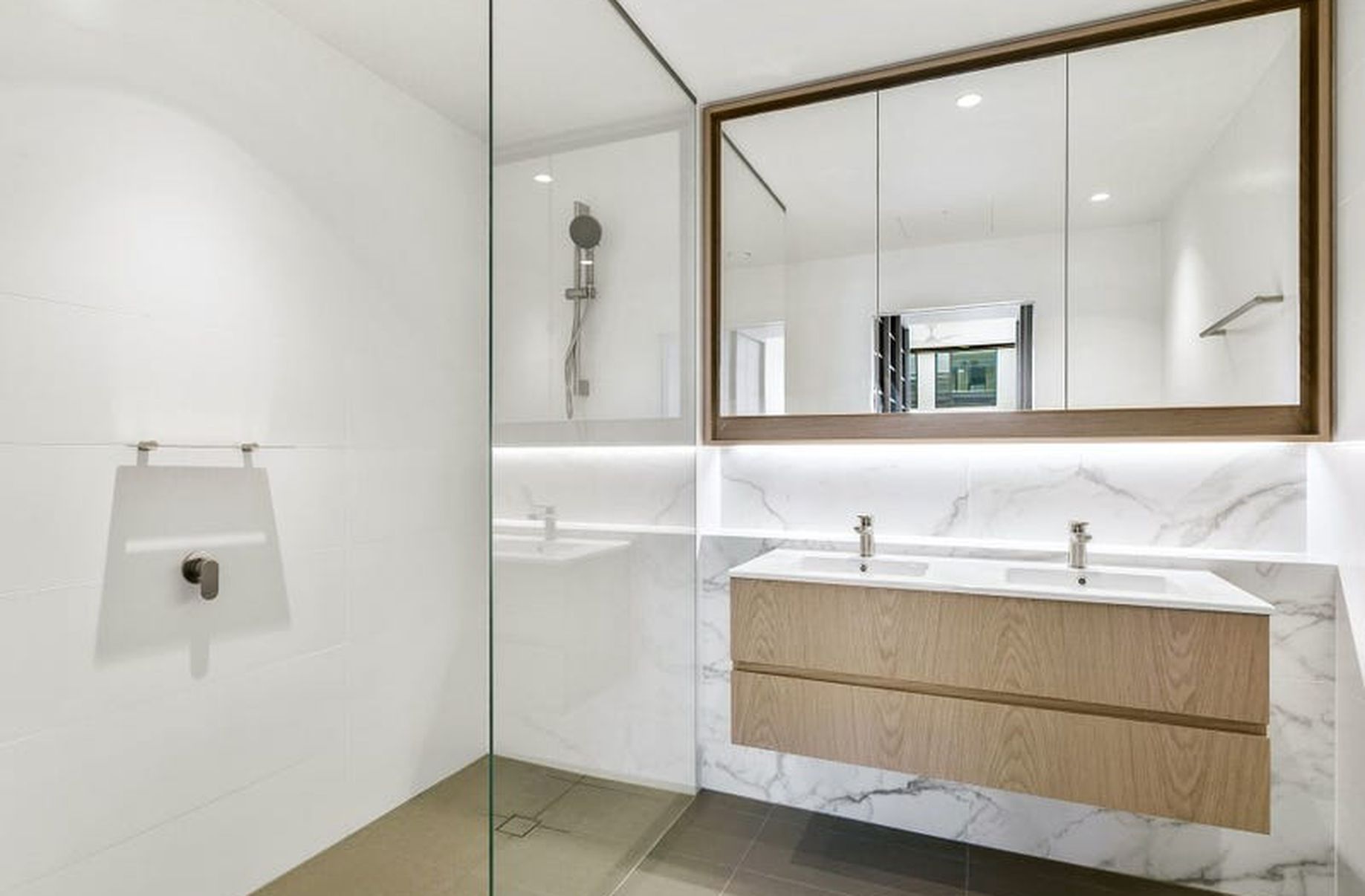 - Chic bathrooms with large frameless glass showers