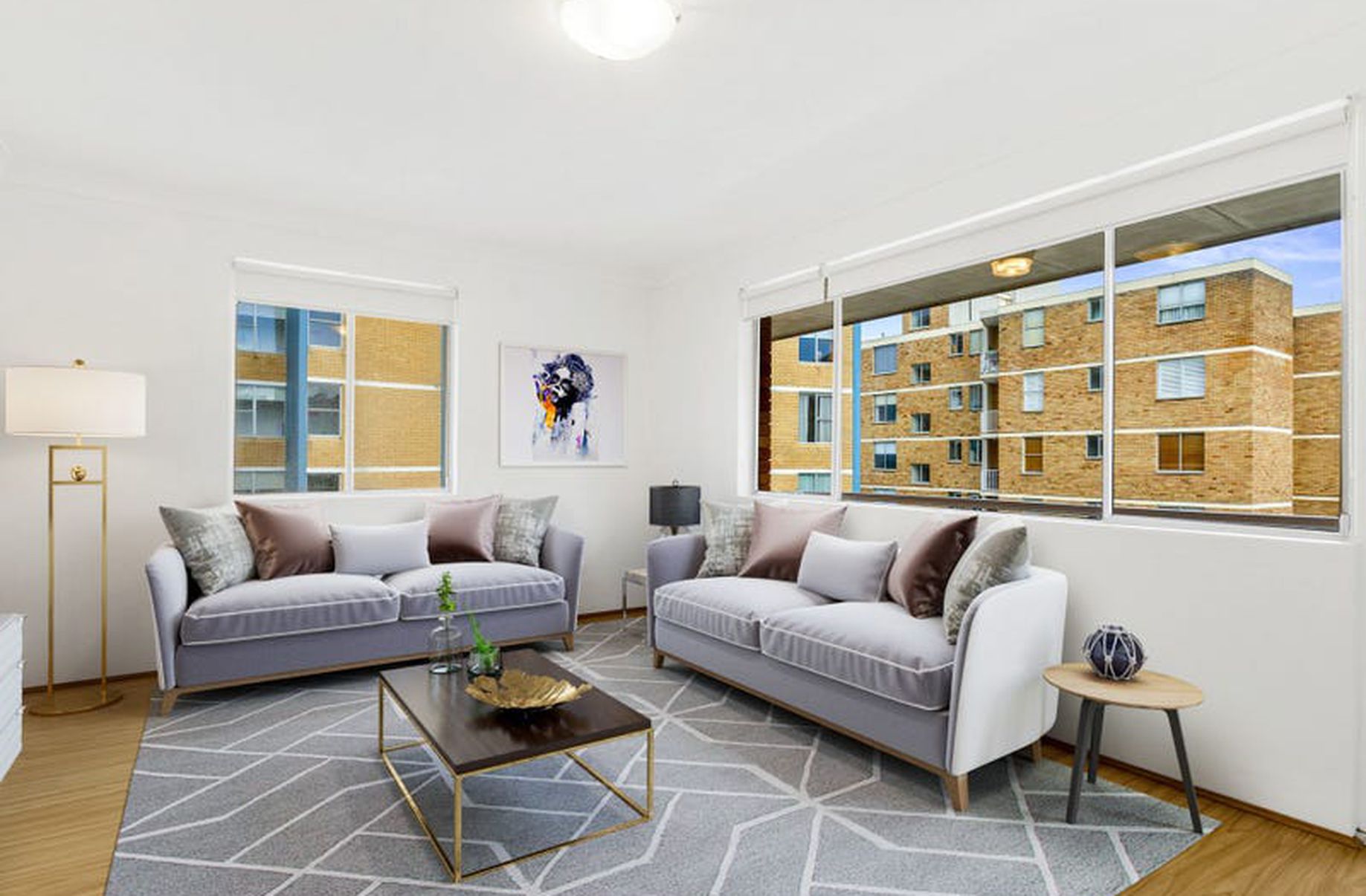 - Spacious living and dining, windows on three sides