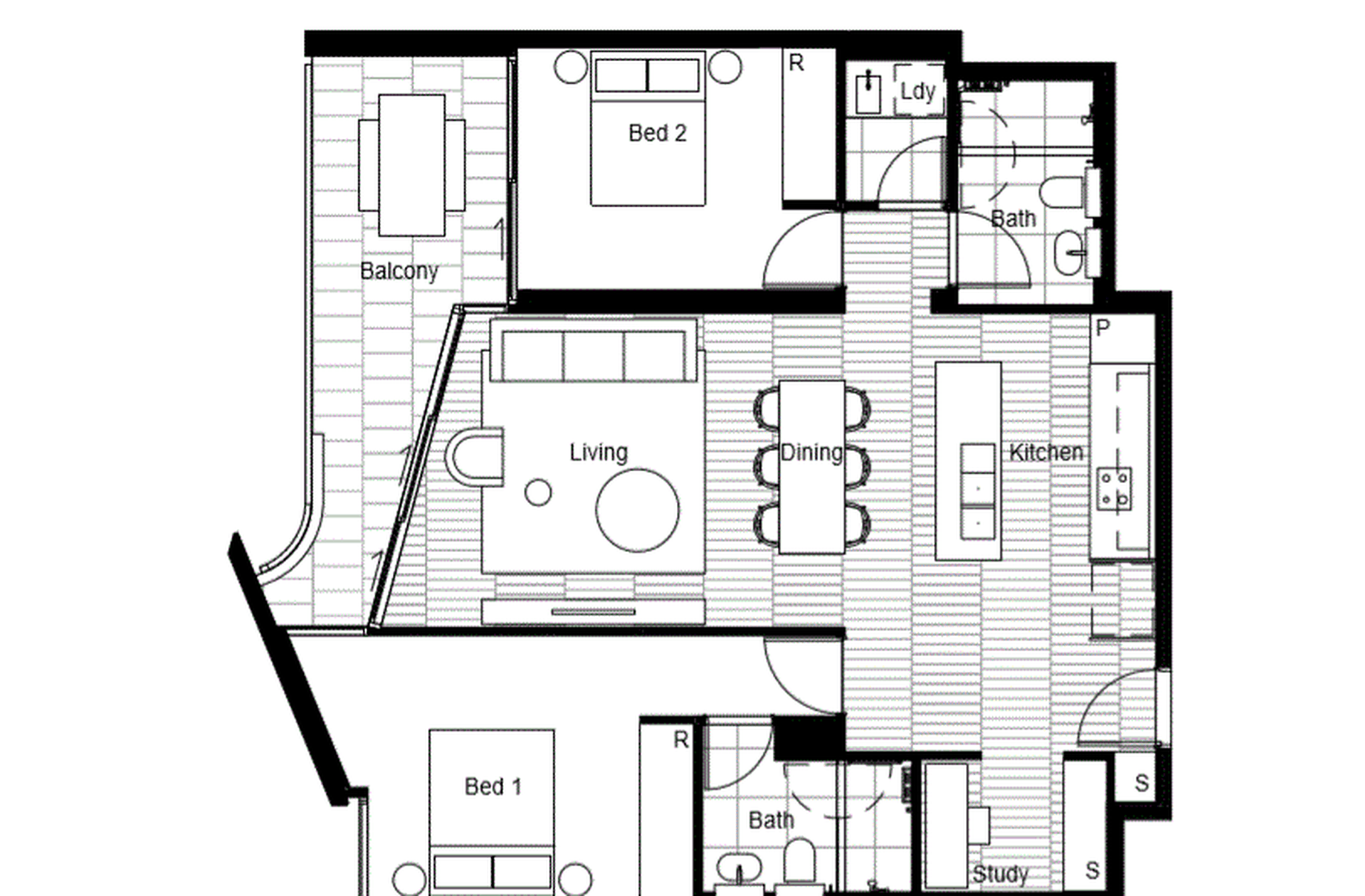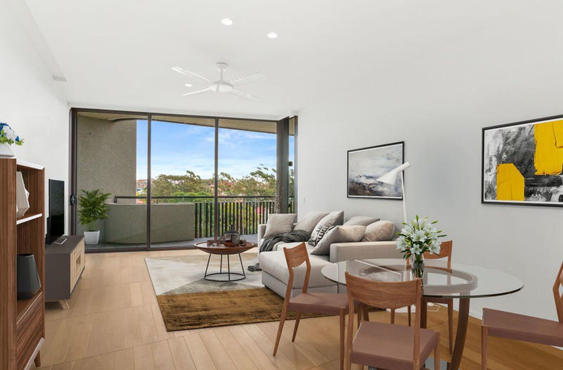 - Open plan living space flowing to the balcony