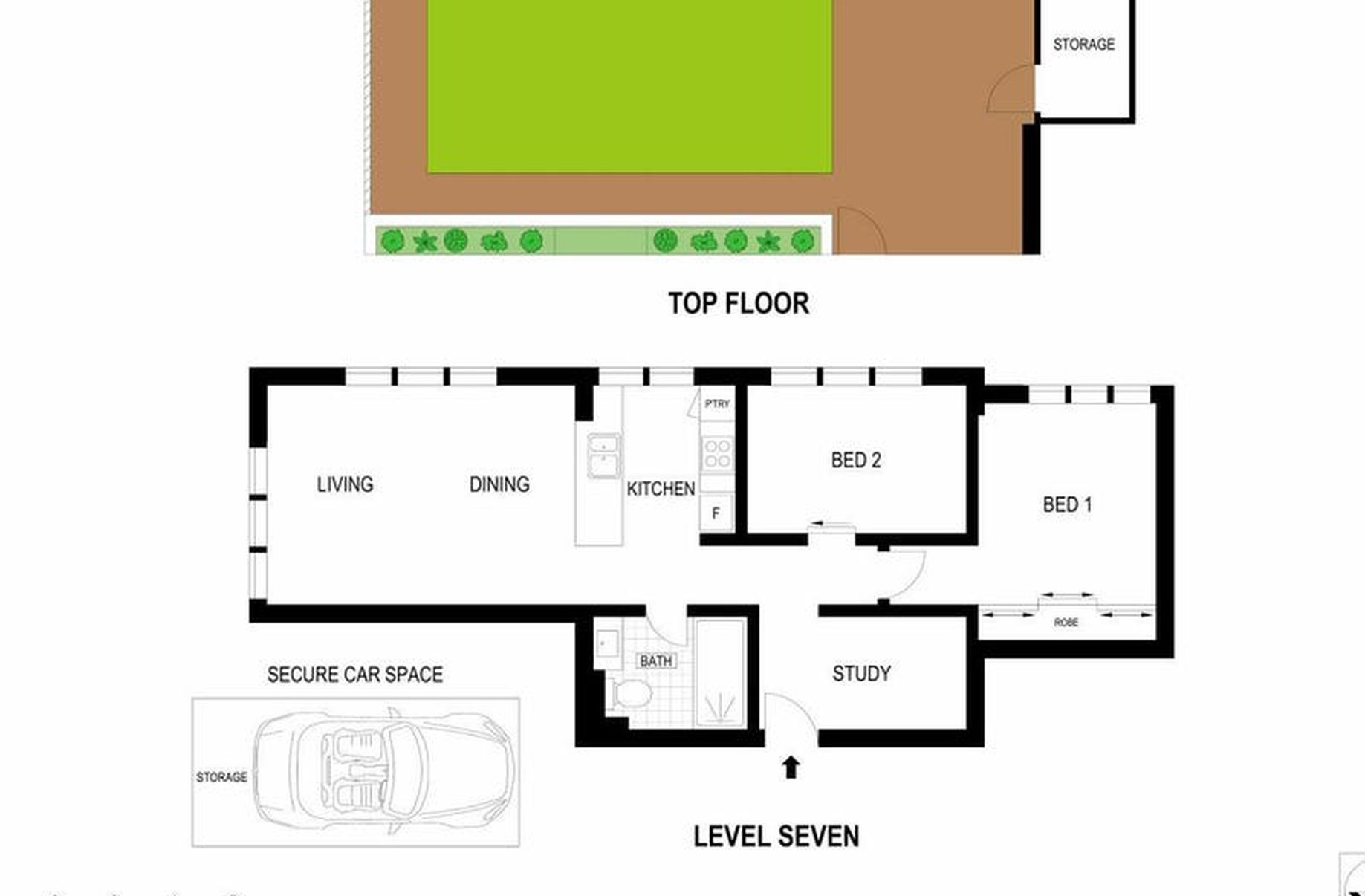 - 2 bedrooms plus separate study