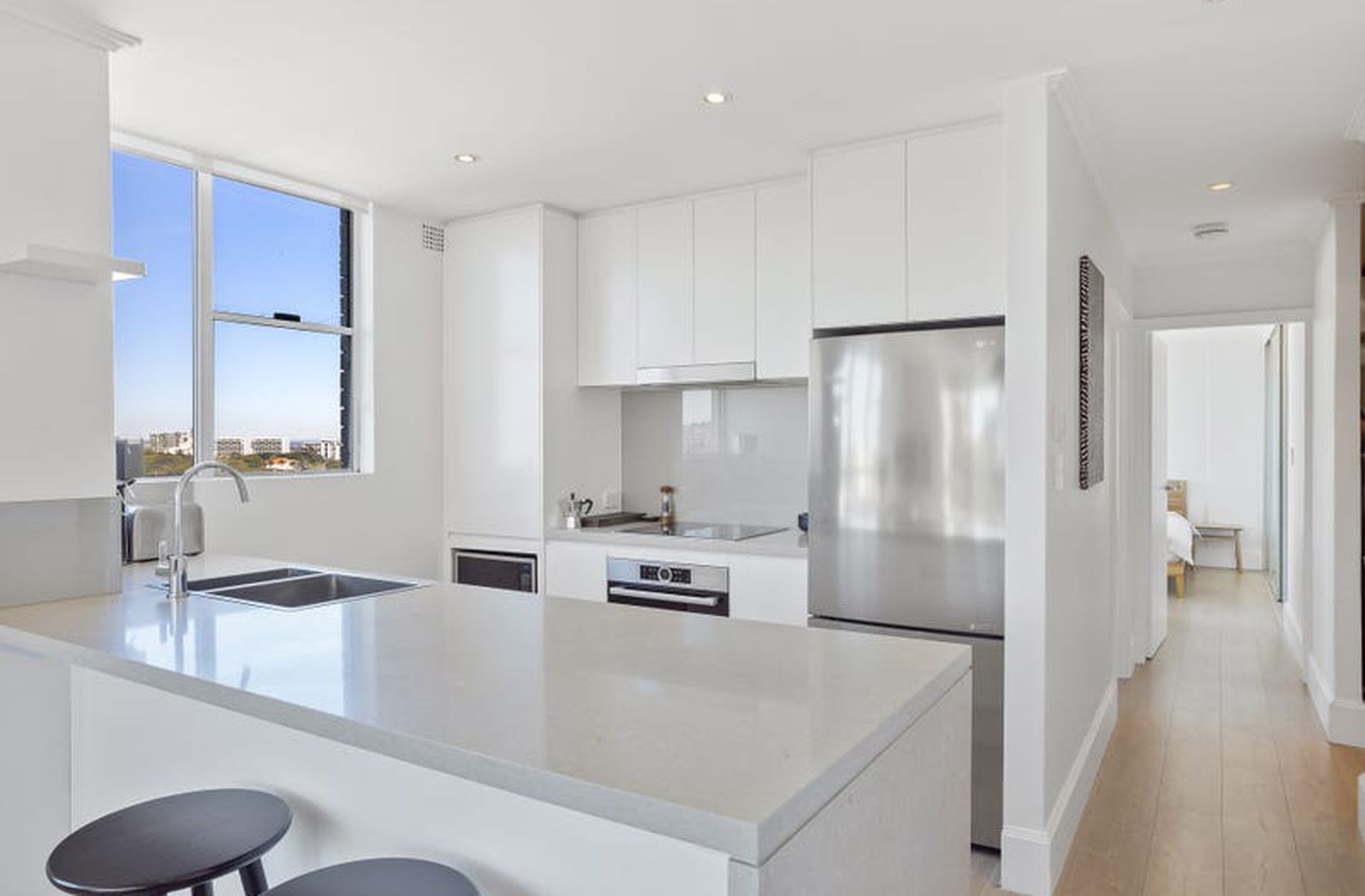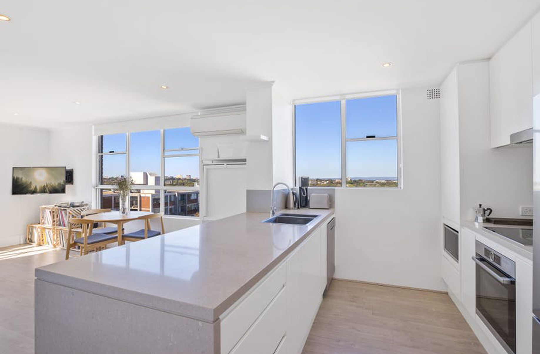 Highlights include glass wrapped living/dining, generous bedrooms, a good sized study and the enormous entertainers' terrace with views that span over the Entertainment Quarter to Botany Bay and beyond.