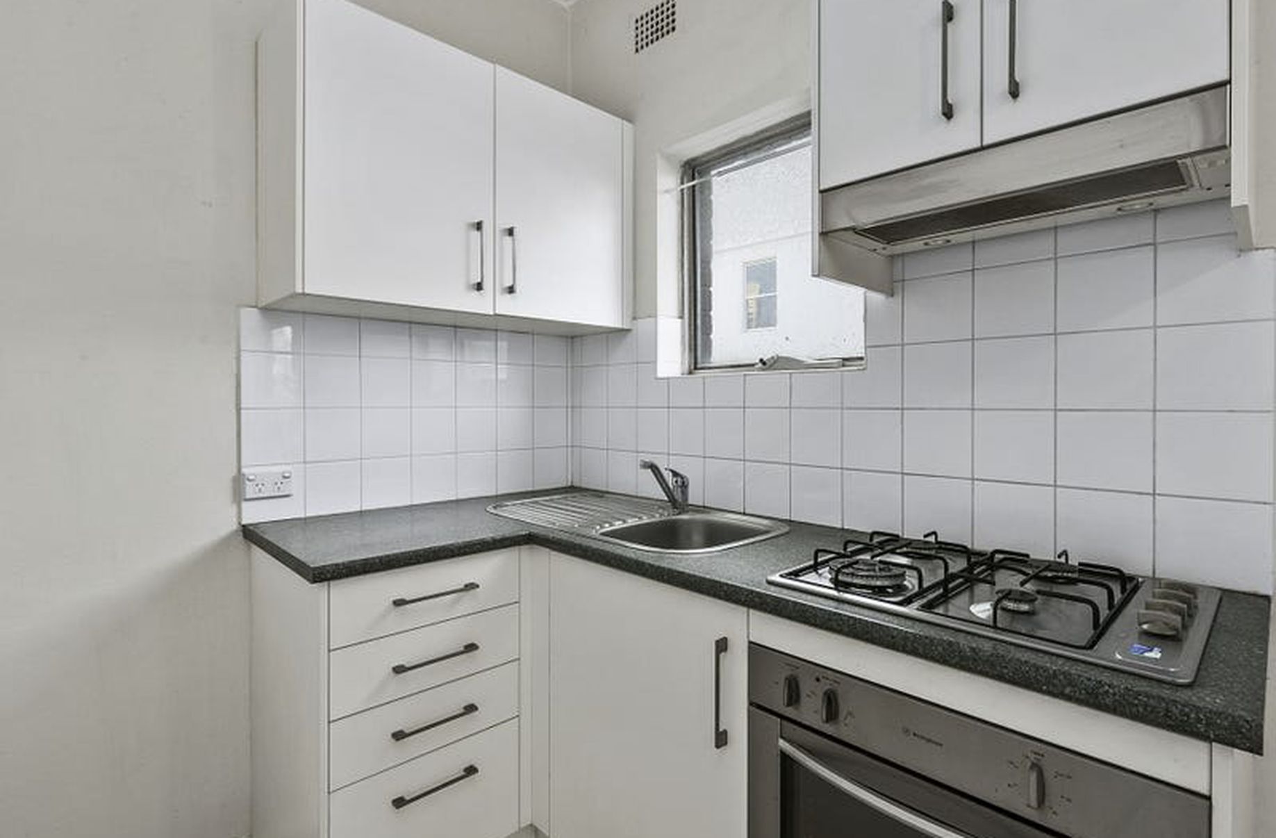 Renovated spacious one bedroom unit. Balcony off living area, carpeted, gas cooking, bath/shower combined, built-in, shared laundry. Two minute walk to Westfield shopping centre and bus/rail interchange.