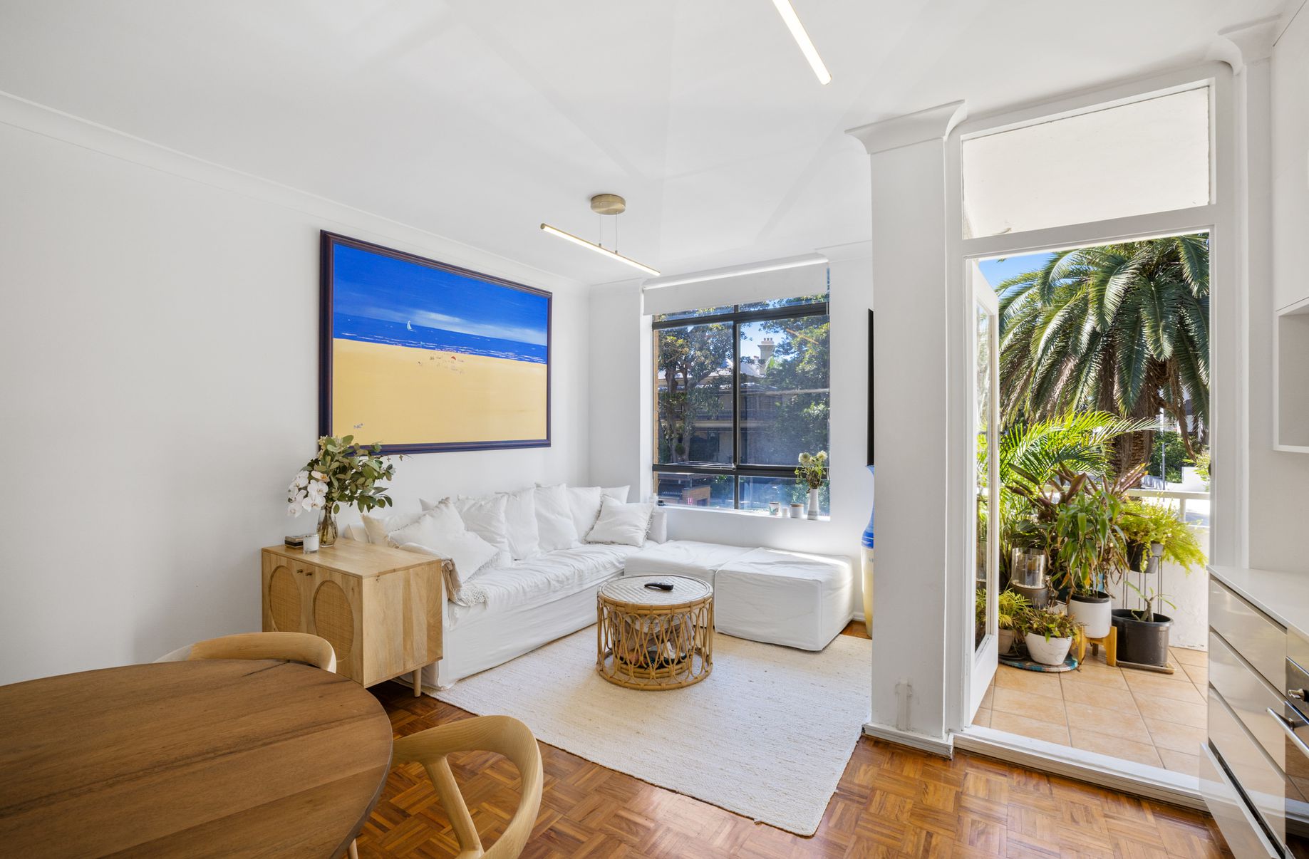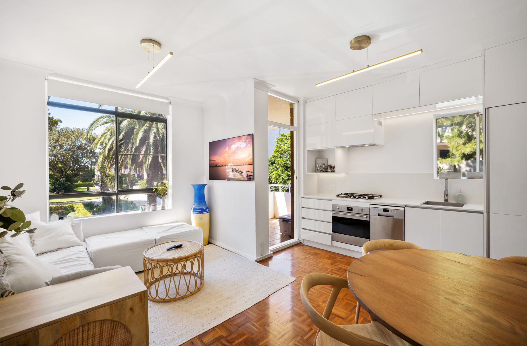 - Open plan living and dining leading to sunny balcony