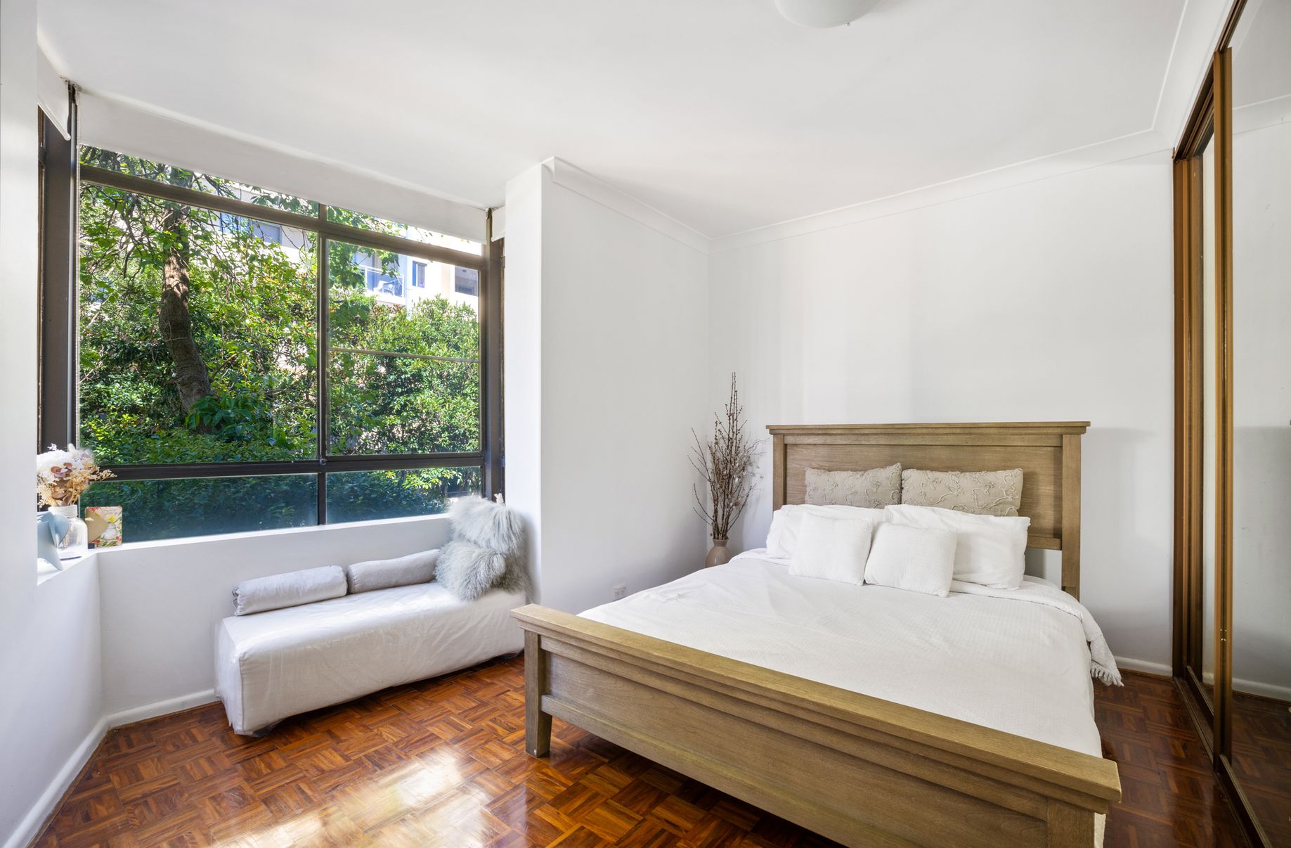 This light-filled two-bedroom unit is quietly situated on the first level at the rear of a small block of 12 units.